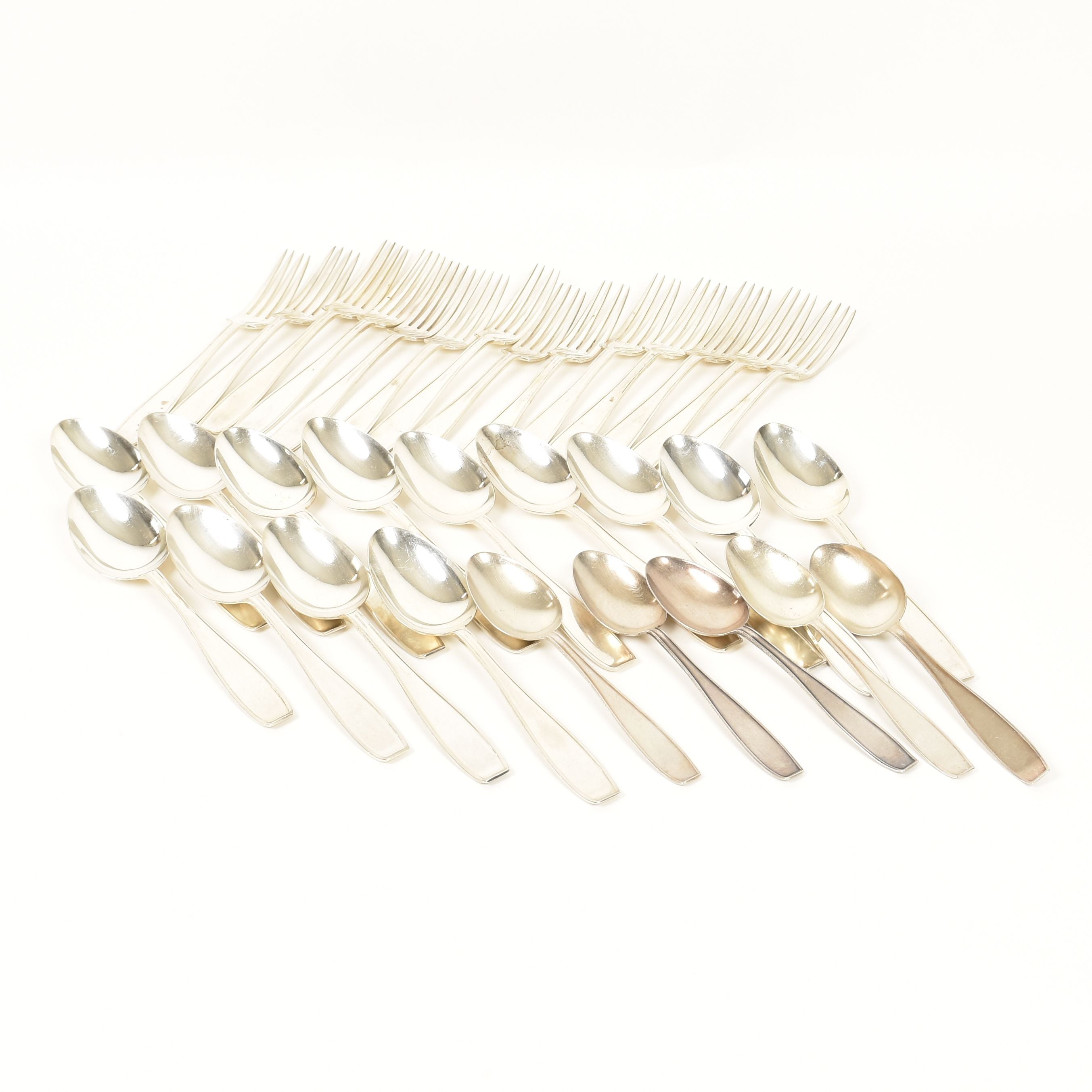 Partie de ménagère de couverts en argent 800/1000 comprenant 14 fourchettes, 13 cuillères et 5 cuillères à dessert (personnalisée) - 1848 g