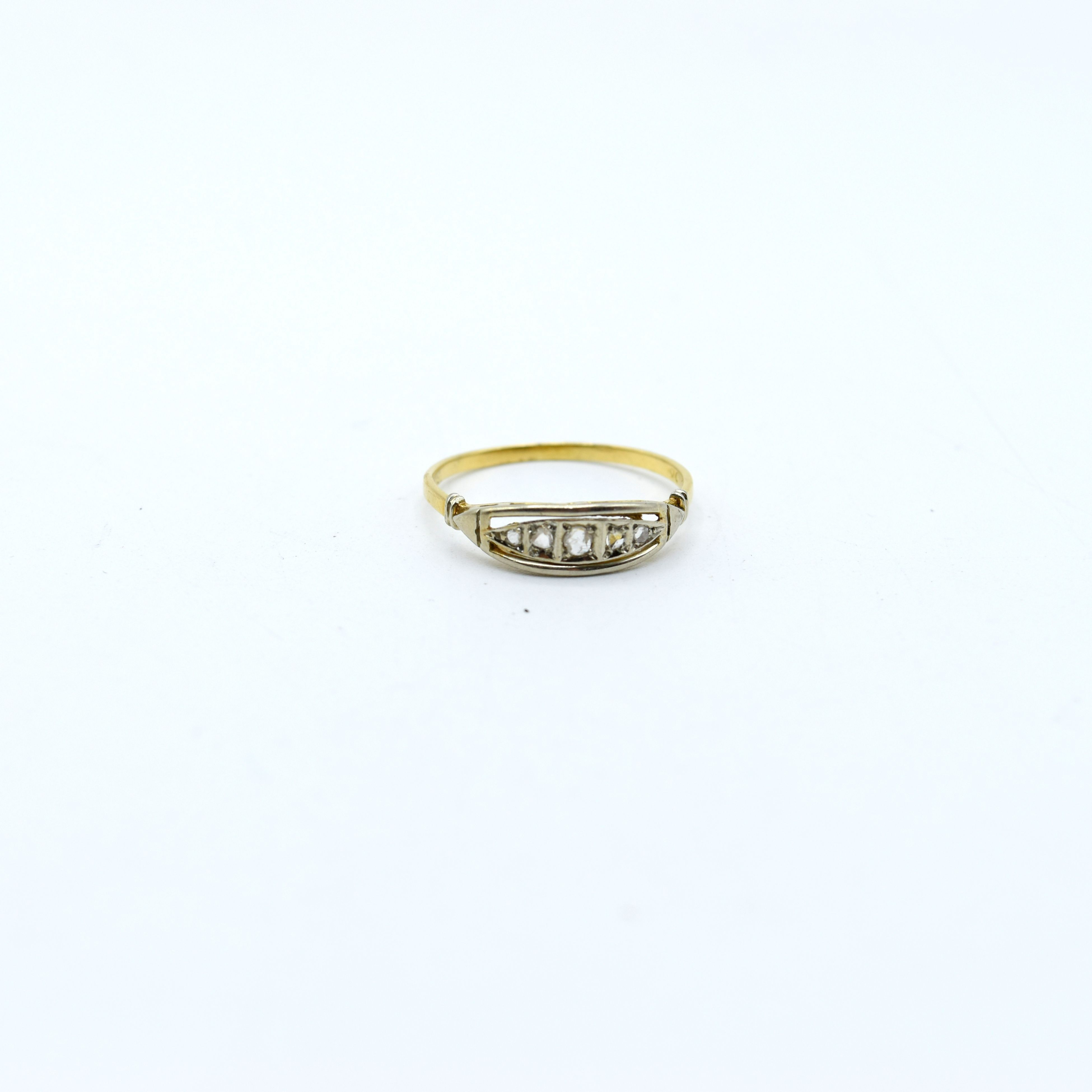 Bague en or jaune et blanc 18 ct sertie de roses et éclats de diamant (pierres ébréchées) - 1.5 g (Taille: 56.5)