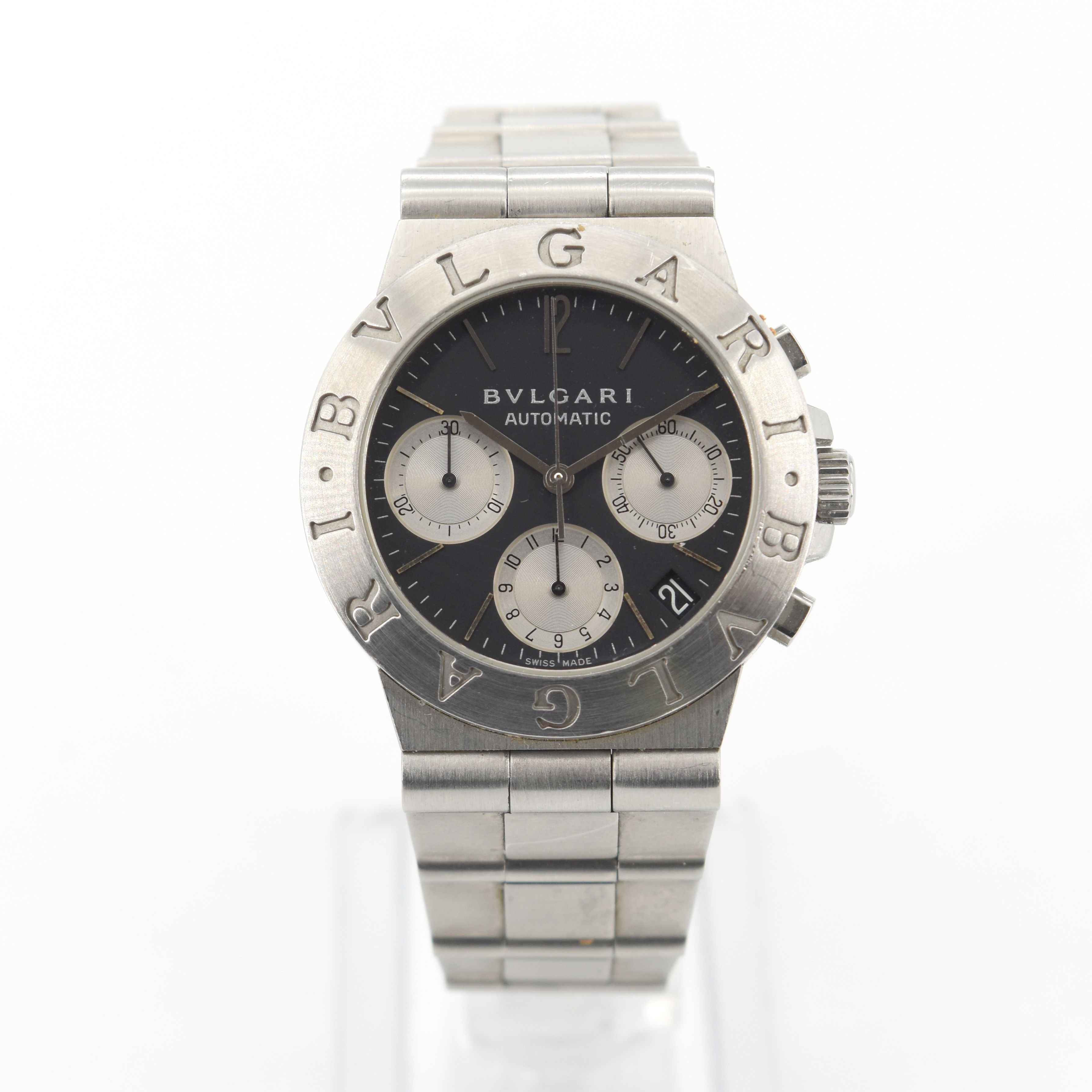 Bracelet-montre homme en acier BVLGARI Diagono automatique (mouvement n° 60249, numéroté D3238, griffé) + boîte d'origine, certificat de garantie et facture (19.5 cm)