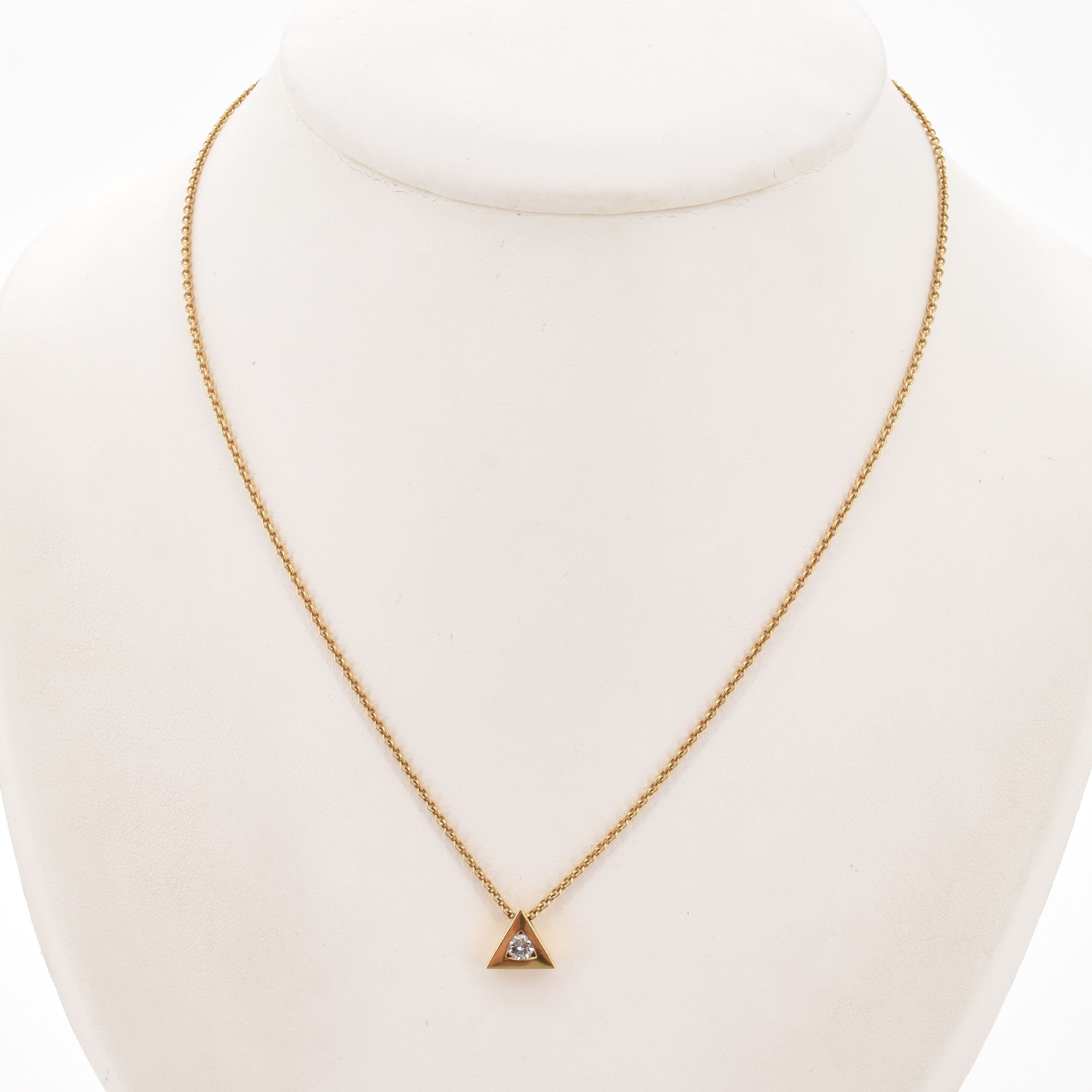 Collier avec pendentif attaché en or jaune 18 ct serti d'1 brillant +/- 0.18 ct - 5.2 g (43 cm)