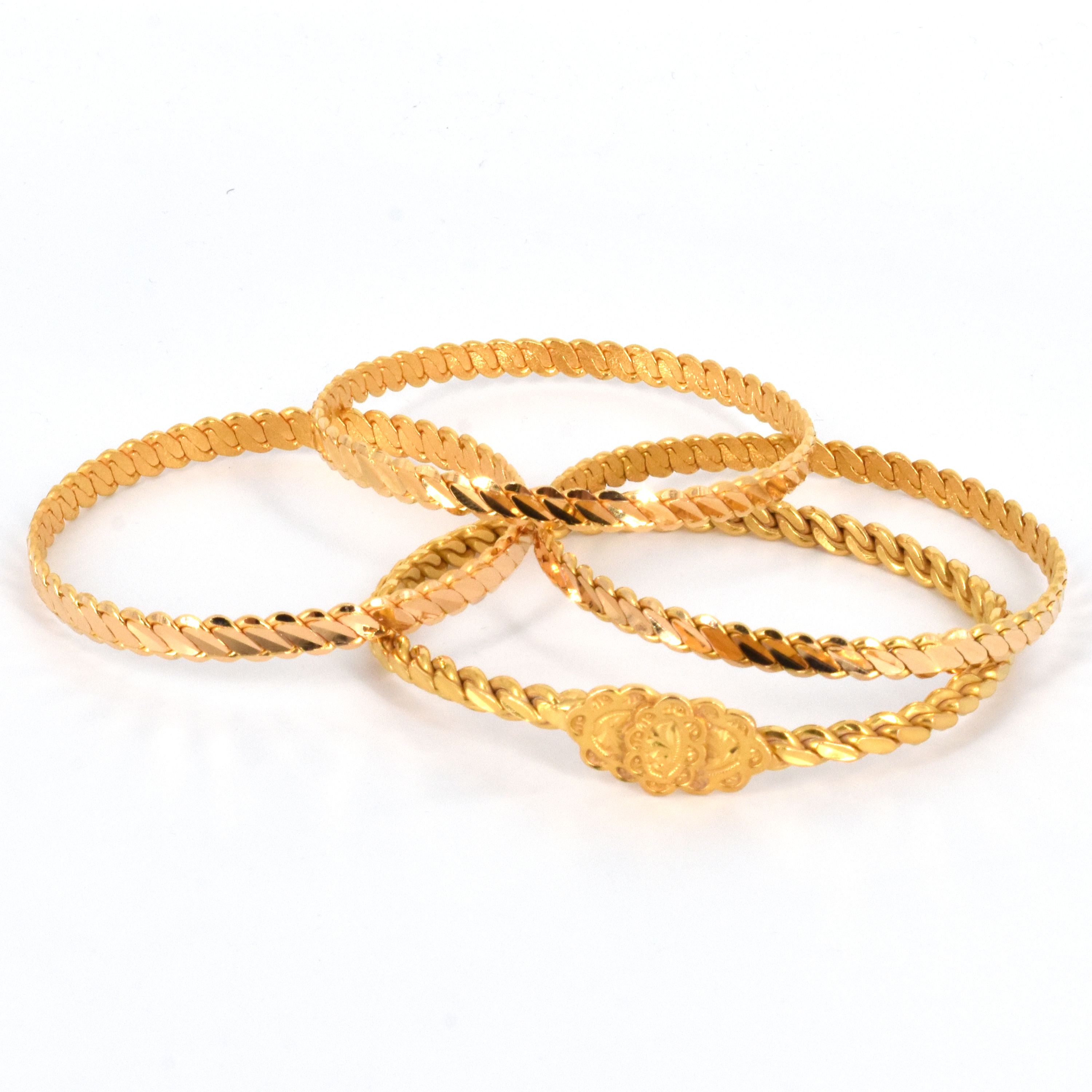 4 bracelets rigides en or jaune 22 ct - 117.6 g (Diam: 6.5 cm x 3) (7.5 x 6 cm)