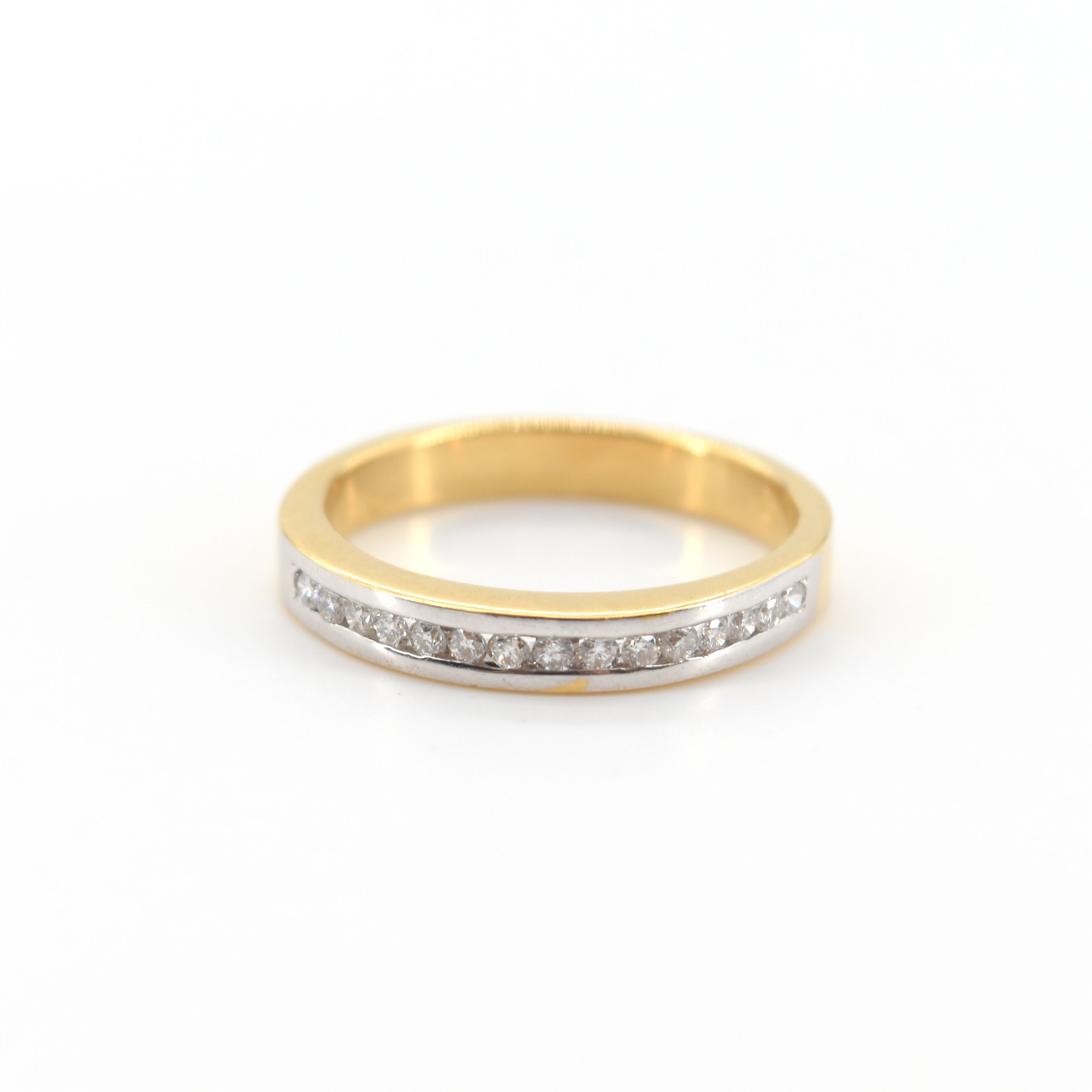 Bague en or jaune et blanc 18 ct sertie de 15 brillants +/- 0.22 ct - 3.5 g (Taille: 55)