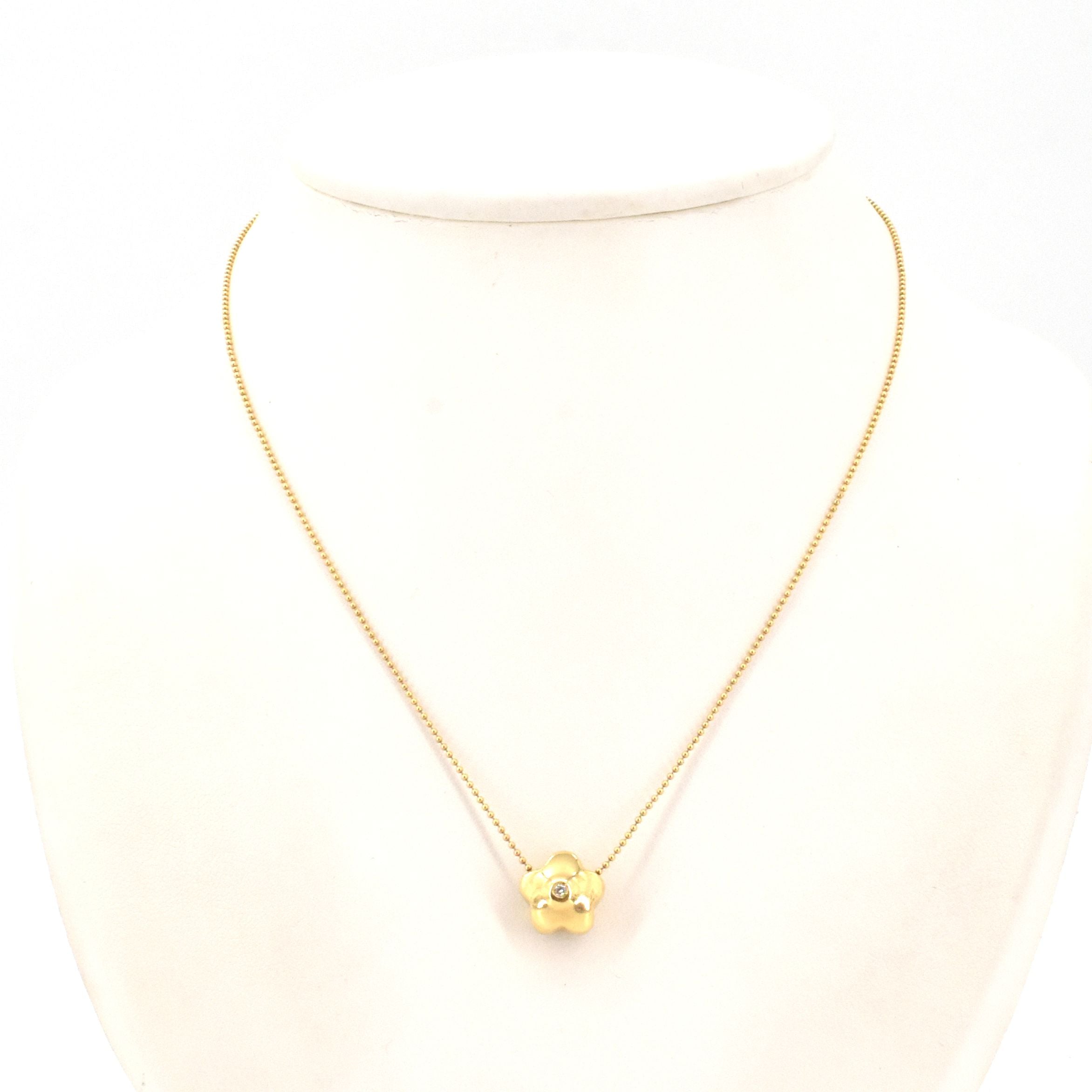 Collier avec pendentif attaché en or jaune 18 ct serti d'1 brillant +/- 0.03 ct (bosselé) - 5.4 g (44 cm)