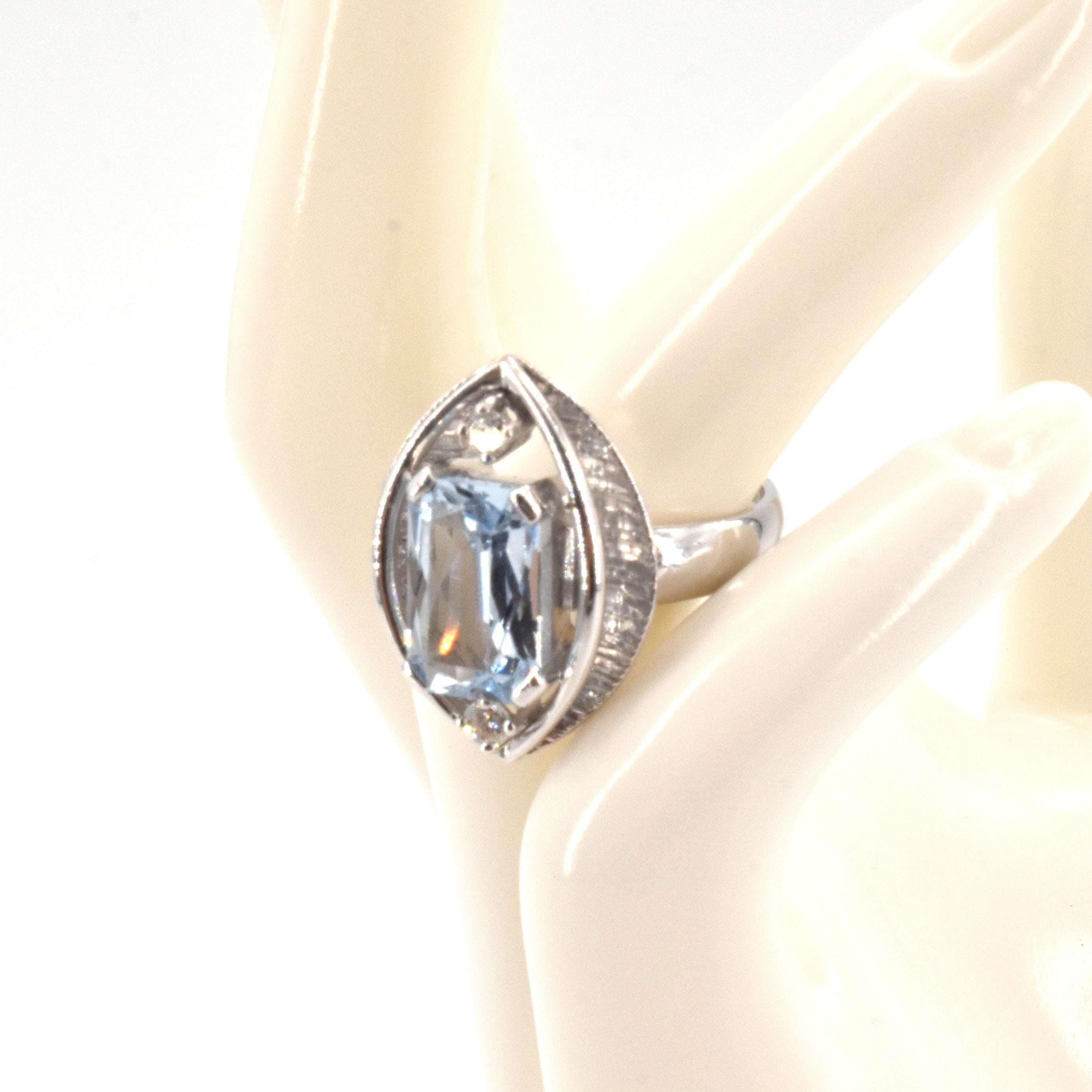 Bague en or blanc 18 ct sertie de 2 brillants +/- 0.12 ct (pierre de couleur) - 8.9 g brut (Taille: 61)