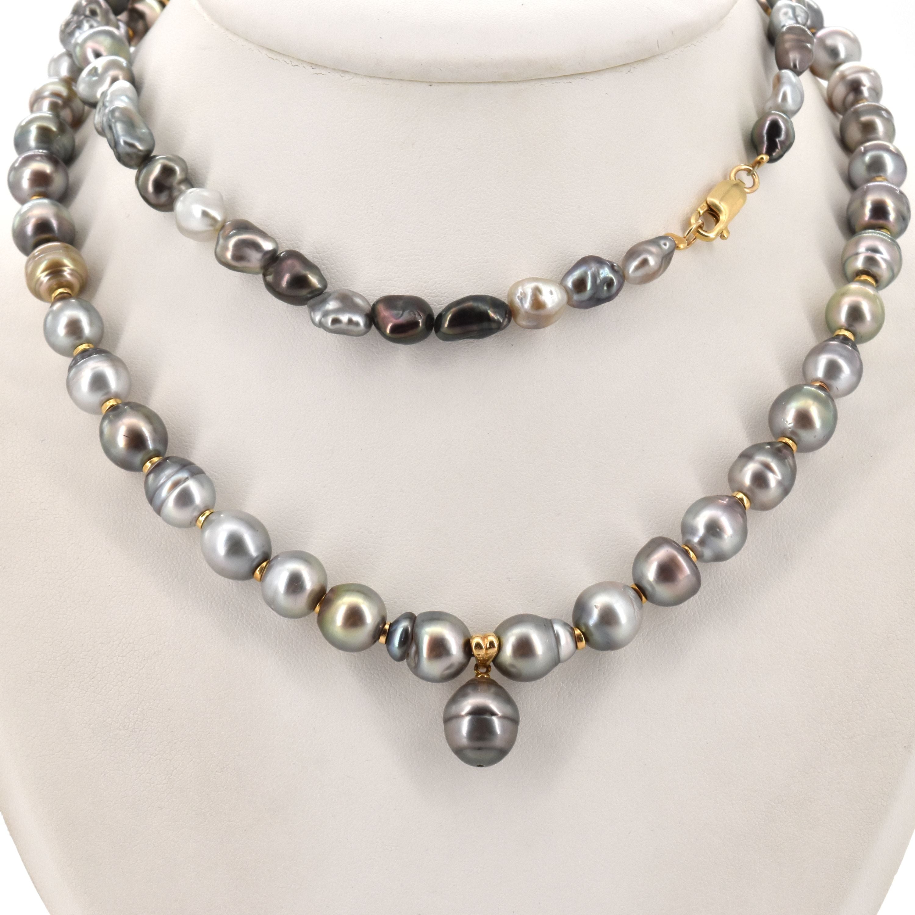 Collier de perles avec fermoir en or jaune 14 ct (40 cm) Collier de perles avec pendentif attaché, fermoir et morceaux en or jaune 18 ct (partie en métal) (42 cm)