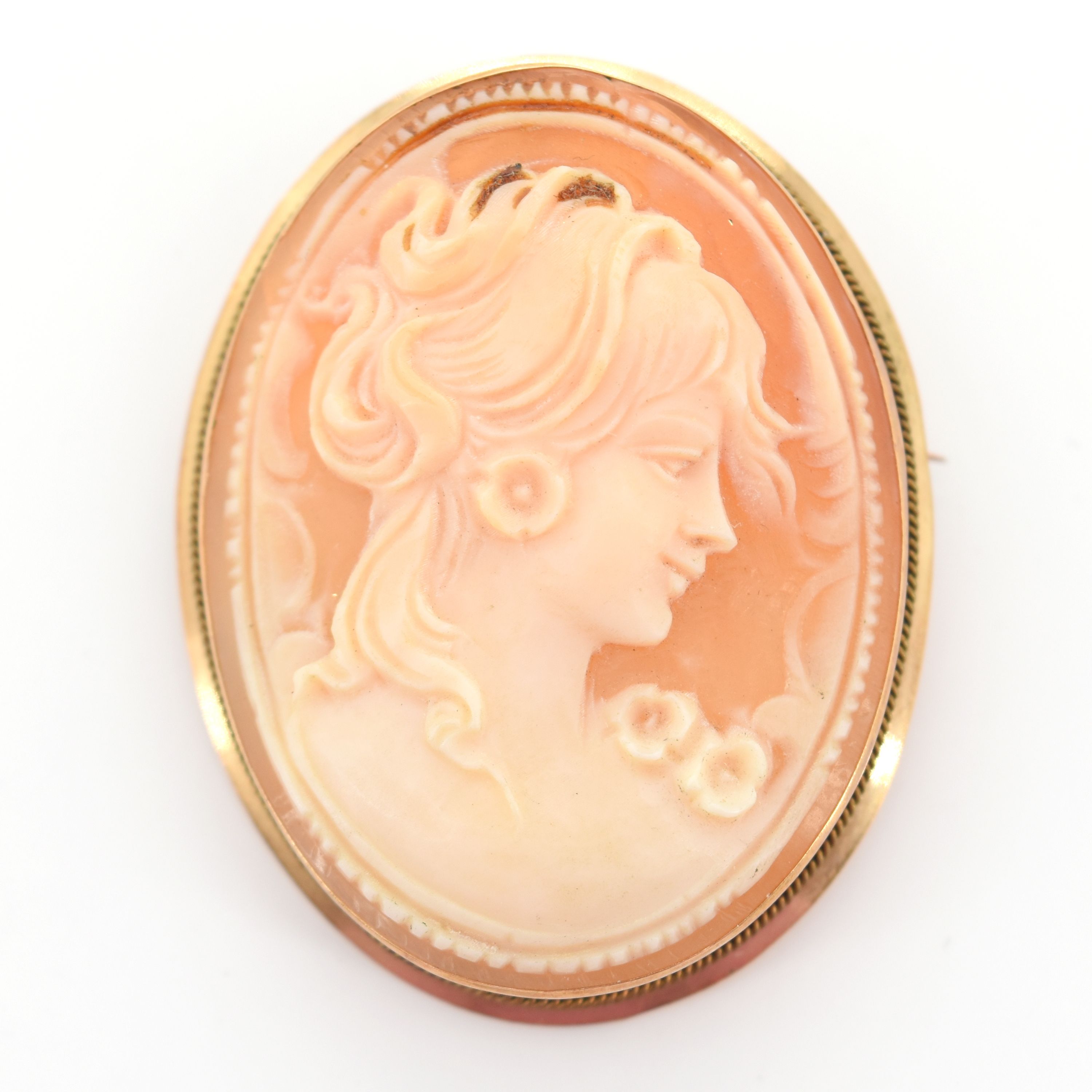 Pendentif/broche en or jaune 18 ct avec partie en or 14 ct serti d'1 camée (signé, épingle bosselée) - 5.5 g brut