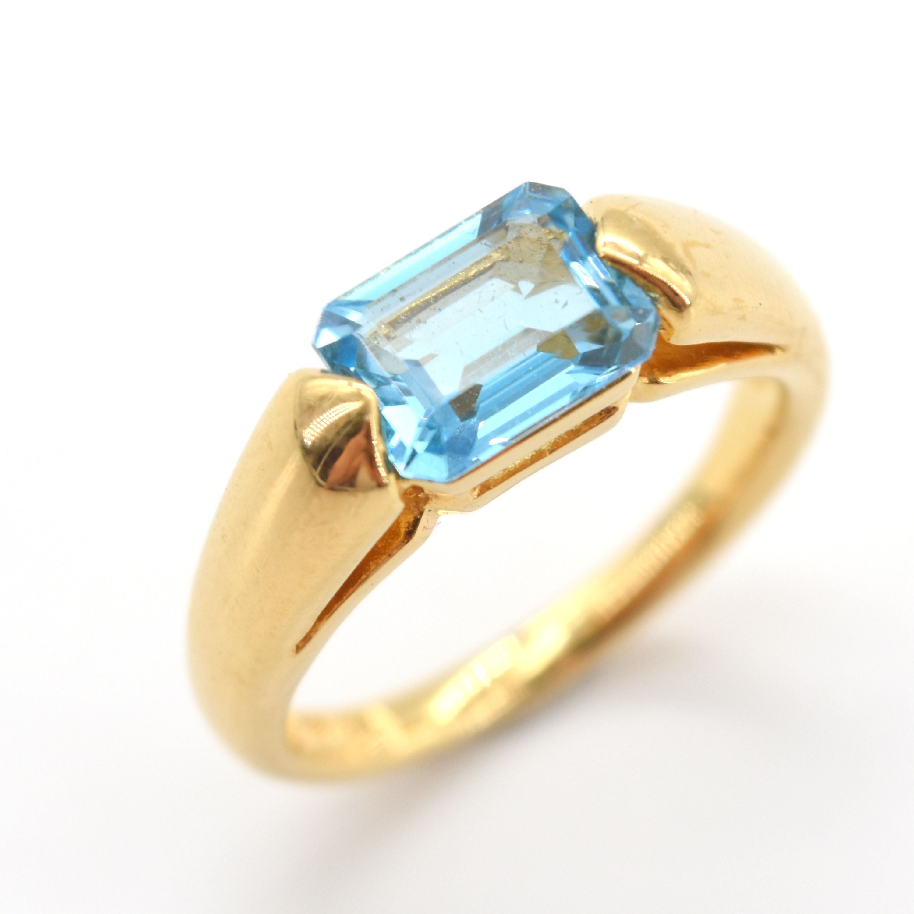 Bague en or jaune 18 ct poinçonnée Enrica MASSEI sertie d'1 topaze bleue - 6.3 g brut (Taille: 52)
