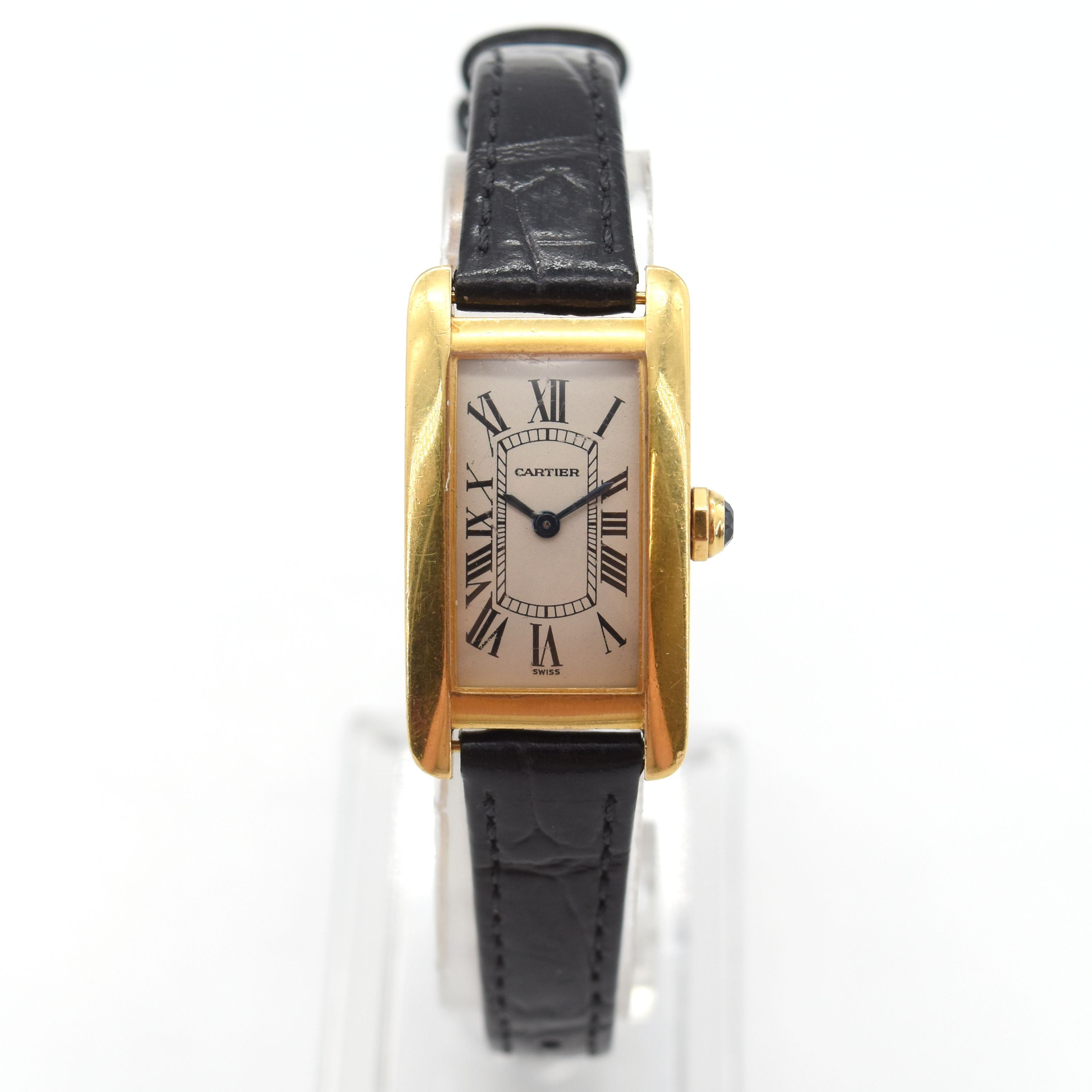 Bracelet-montre dame en or jaune 18 ct CARTIER Tank quartz (pierre de couleur, griffé, bracelet en cuir non d'origine avec boucle d'origine en or jaune 18 ct)