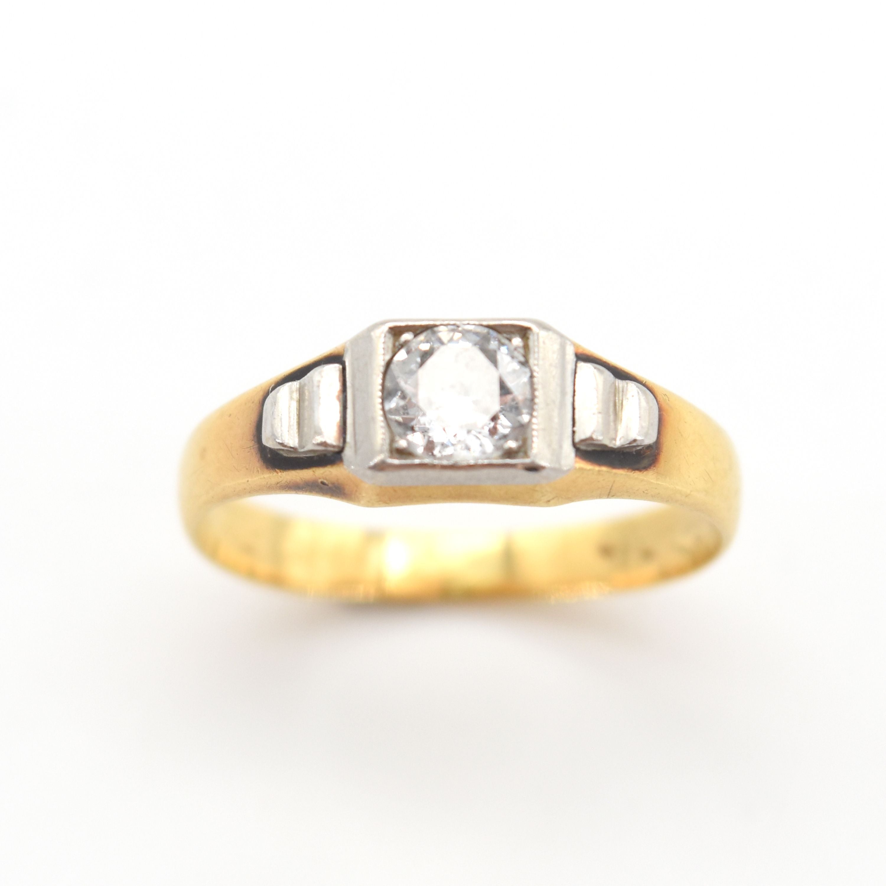 Ring in 18 kt geelgoud en platina bezet met 1 briljant +/- 0.35 kt - 3.5 g (Maat: 56)