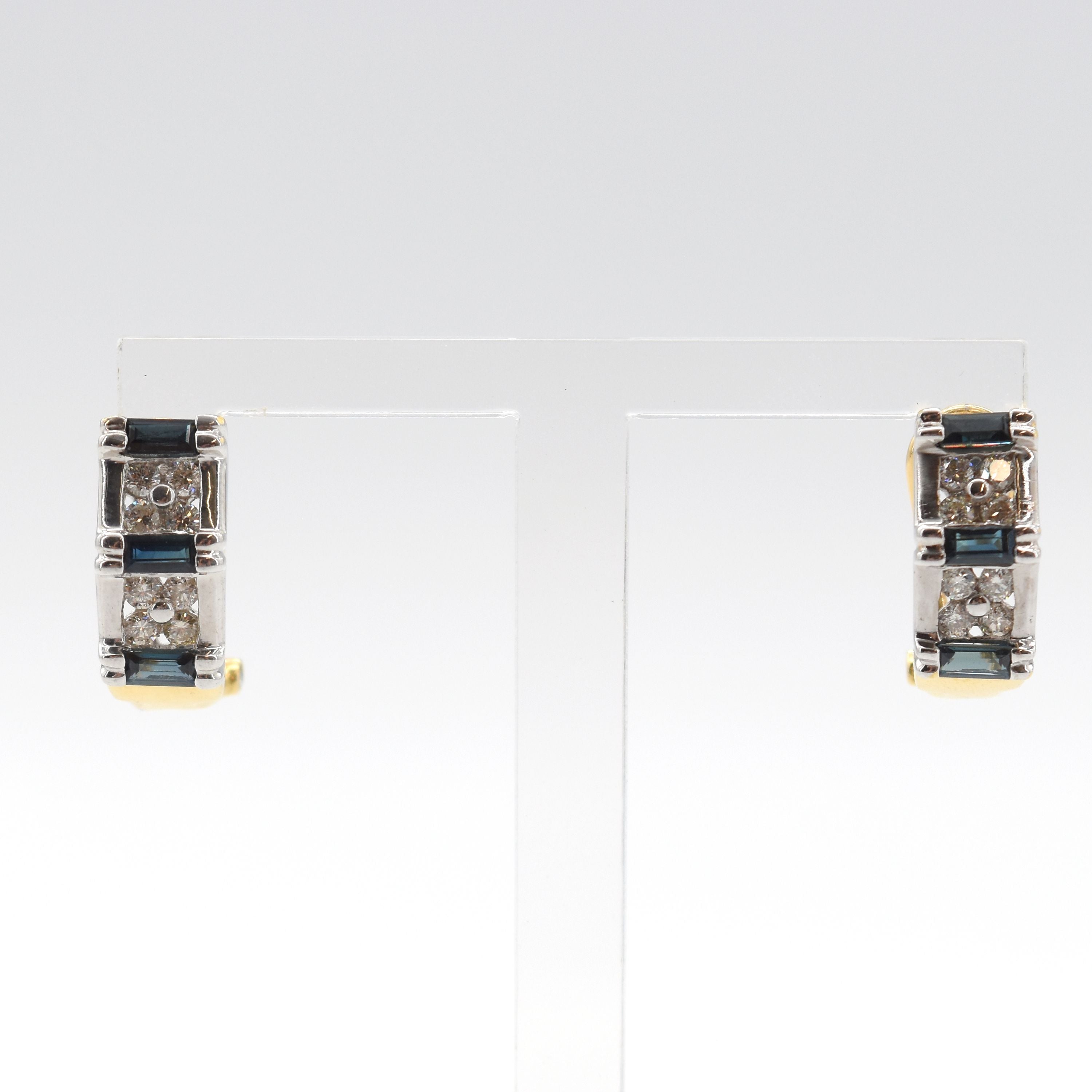 2 oorringen in 18 kt geel- en witgoud bezet met 16 briljanten +/- 0.64 kt (kleurstenen) - 5.2 g bruto