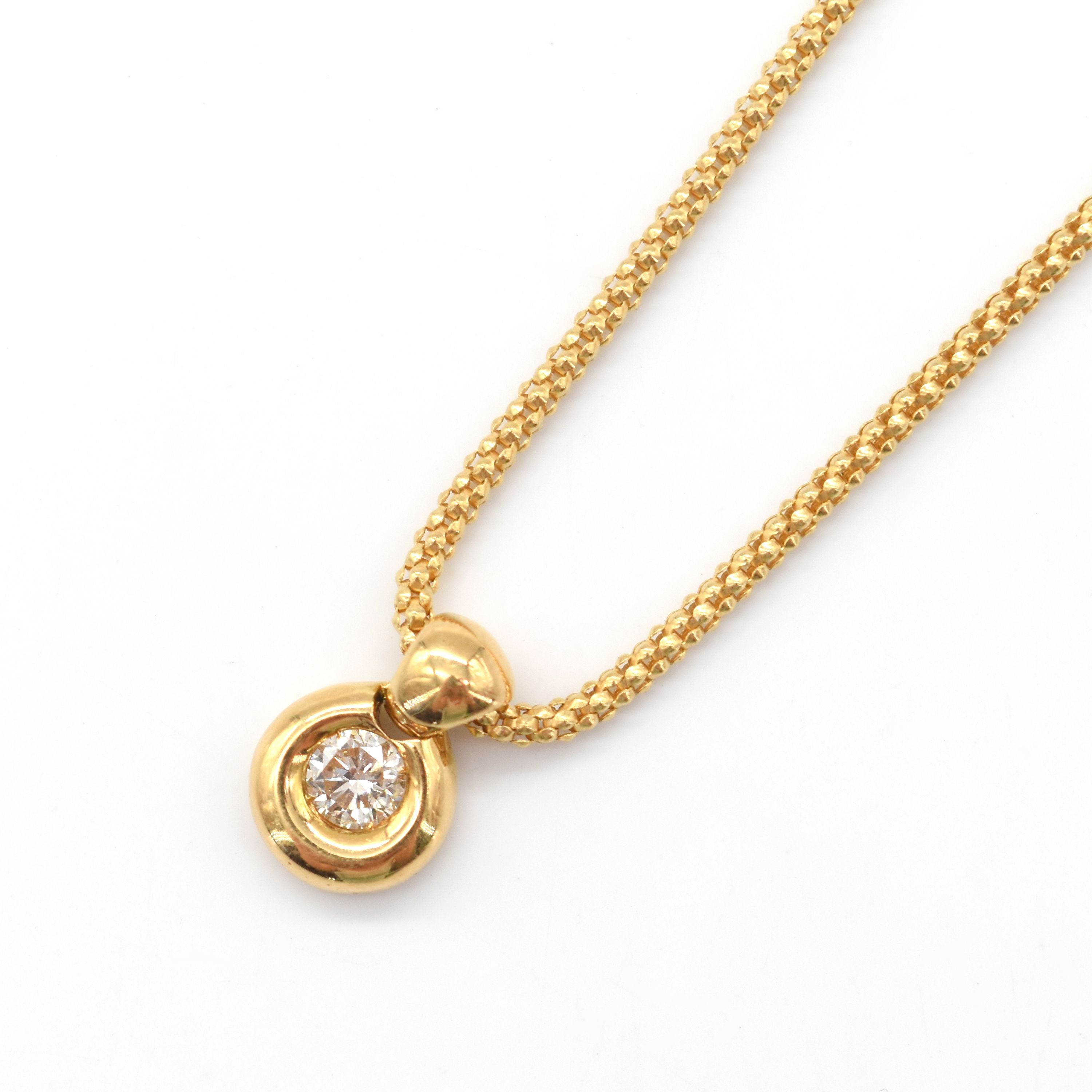 Halsketting met vastgehechte hanger in 18 kt geelgoud bezet met 1 briljant +/- 0.20 kt - 5.6 g (42 cm)
