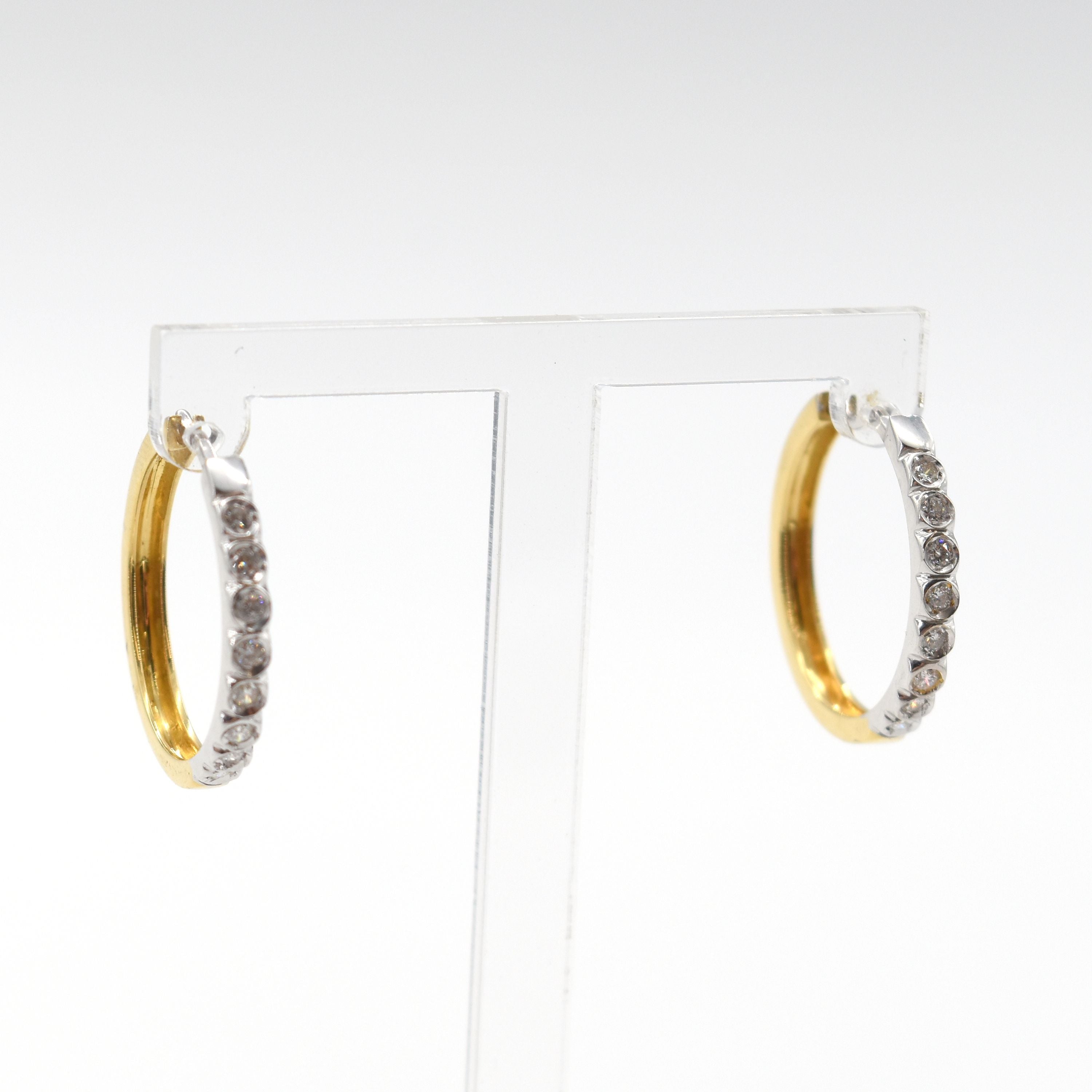 2 oorringen in 18 kt geel- en witgoud bezet met 16 briljanten +/- 0.48 kt - 5.3 g