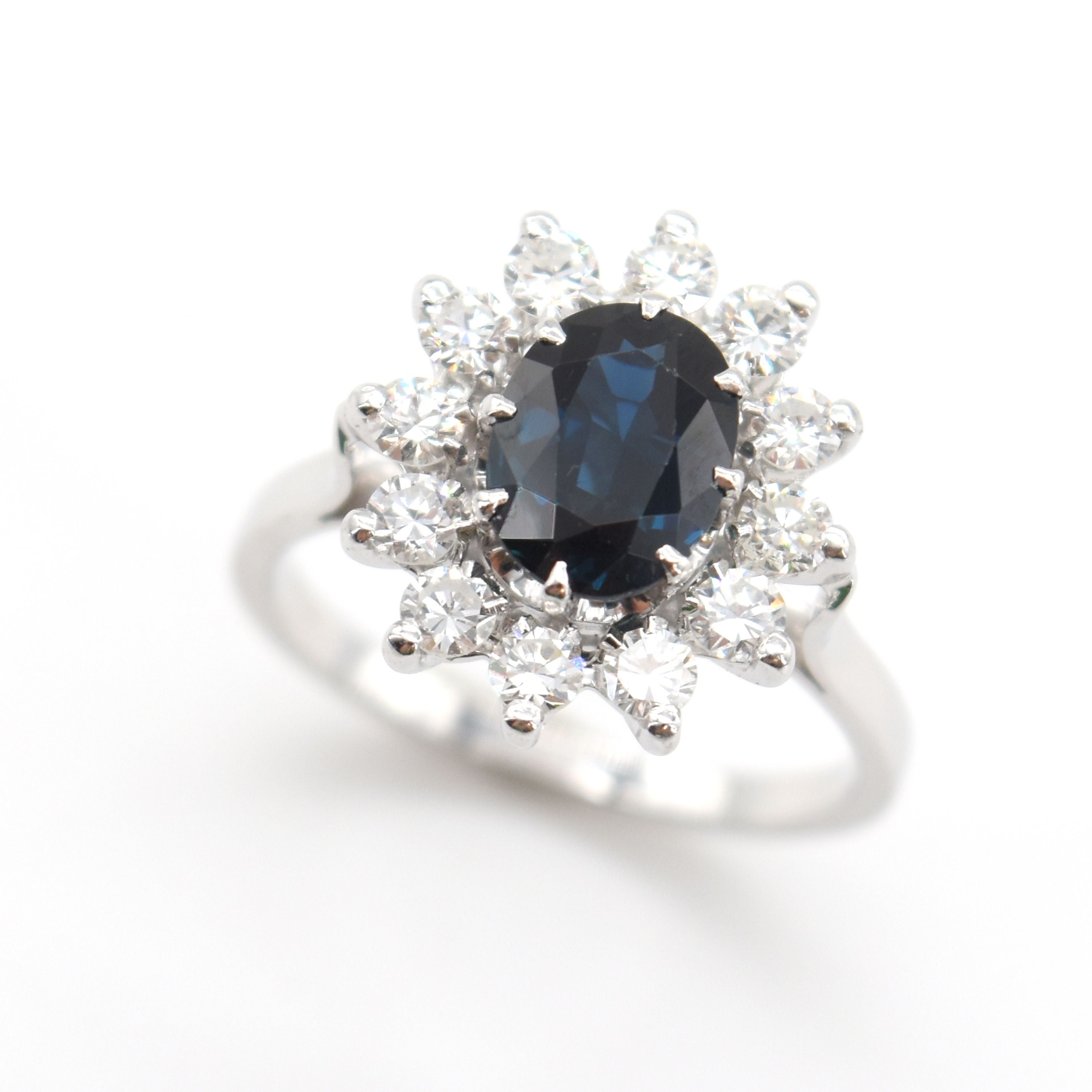 Ring in 18 kt witgoud bezet met 12 diamanten 16/16 slijpsel +/- 0.60 kt (kleursteen) - 4.7 g (Maat: 53)