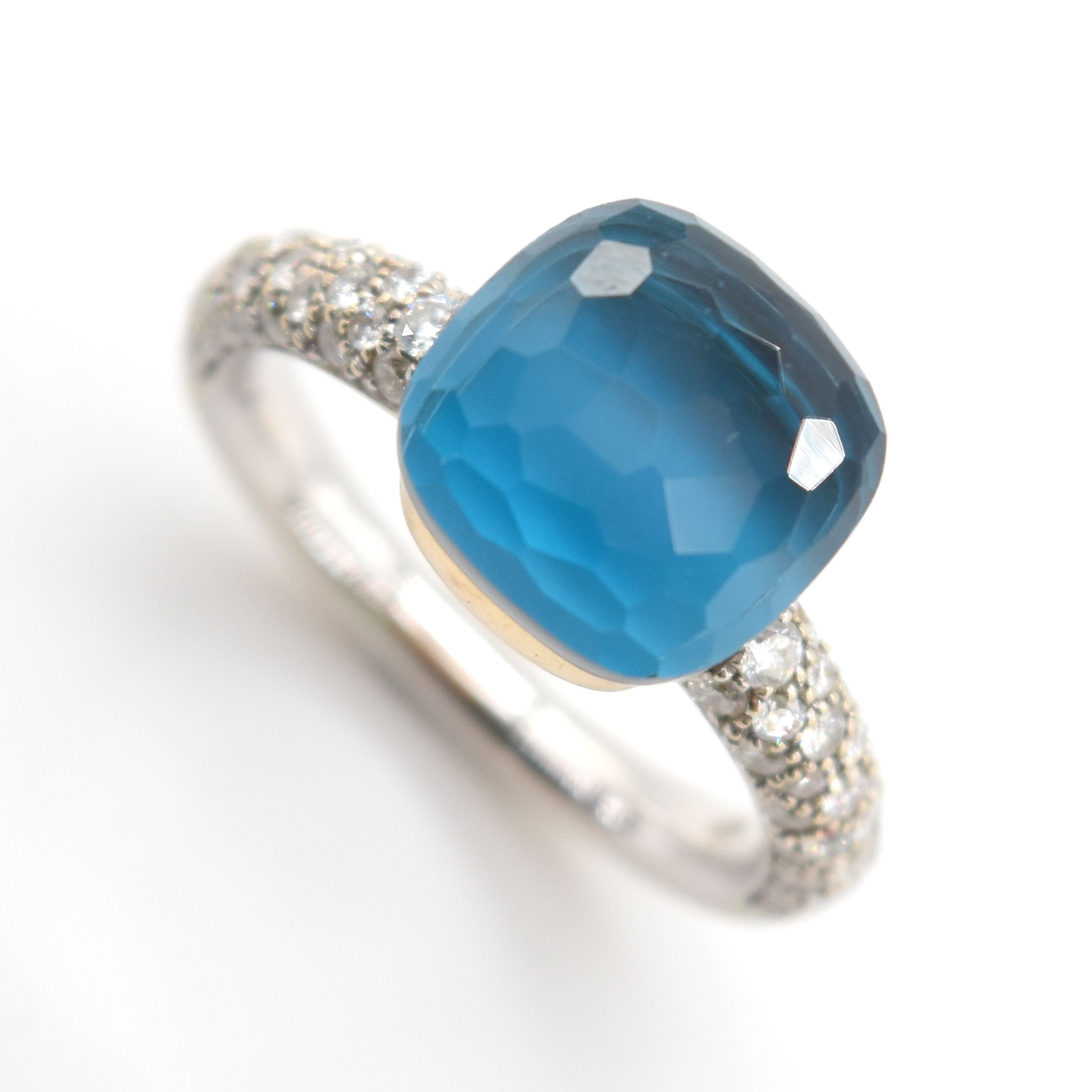 Ring in 18 kt geel- en witgoud getekend en genummerd POMELLATO Nudo bezet met 58 briljanten +/- 1 kt en 1 topaas - 7.9 g bruto + originele doos + kopie factuur (Maat: +/- 54)