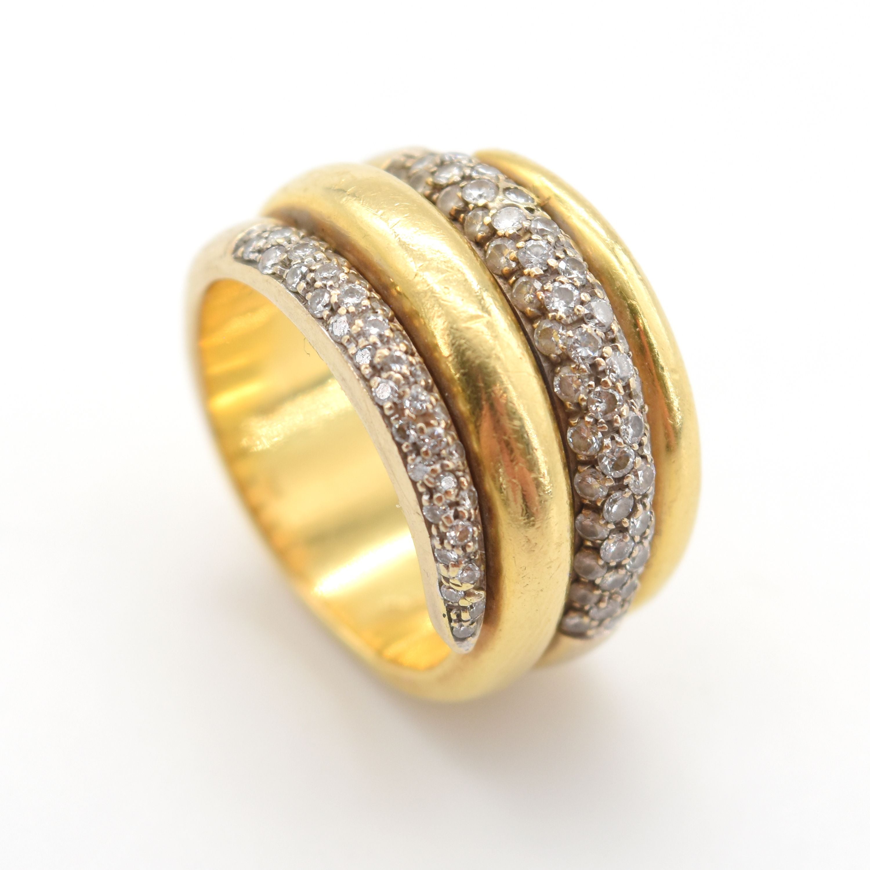 Ring in 18 kt geel- en witgoud bezet met 91 briljanten +/- 1.36 kt (gedeukt) - 24.2 g (Maat: 63)
