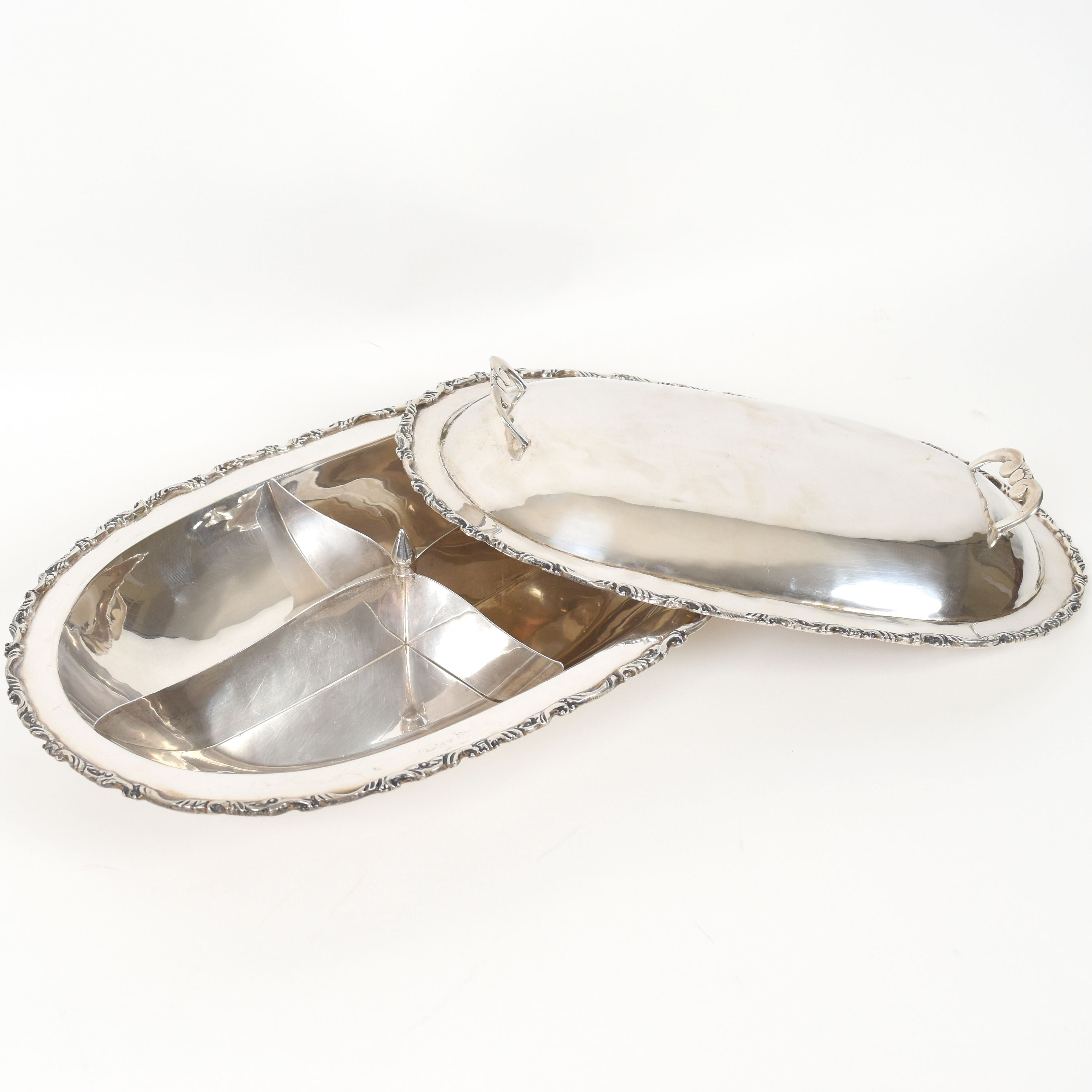 Dienblad met deksel en scheiding in 925/1000 zilver (licht gedeukt) - 2034.4 g (39 x 27 x 8 cm)