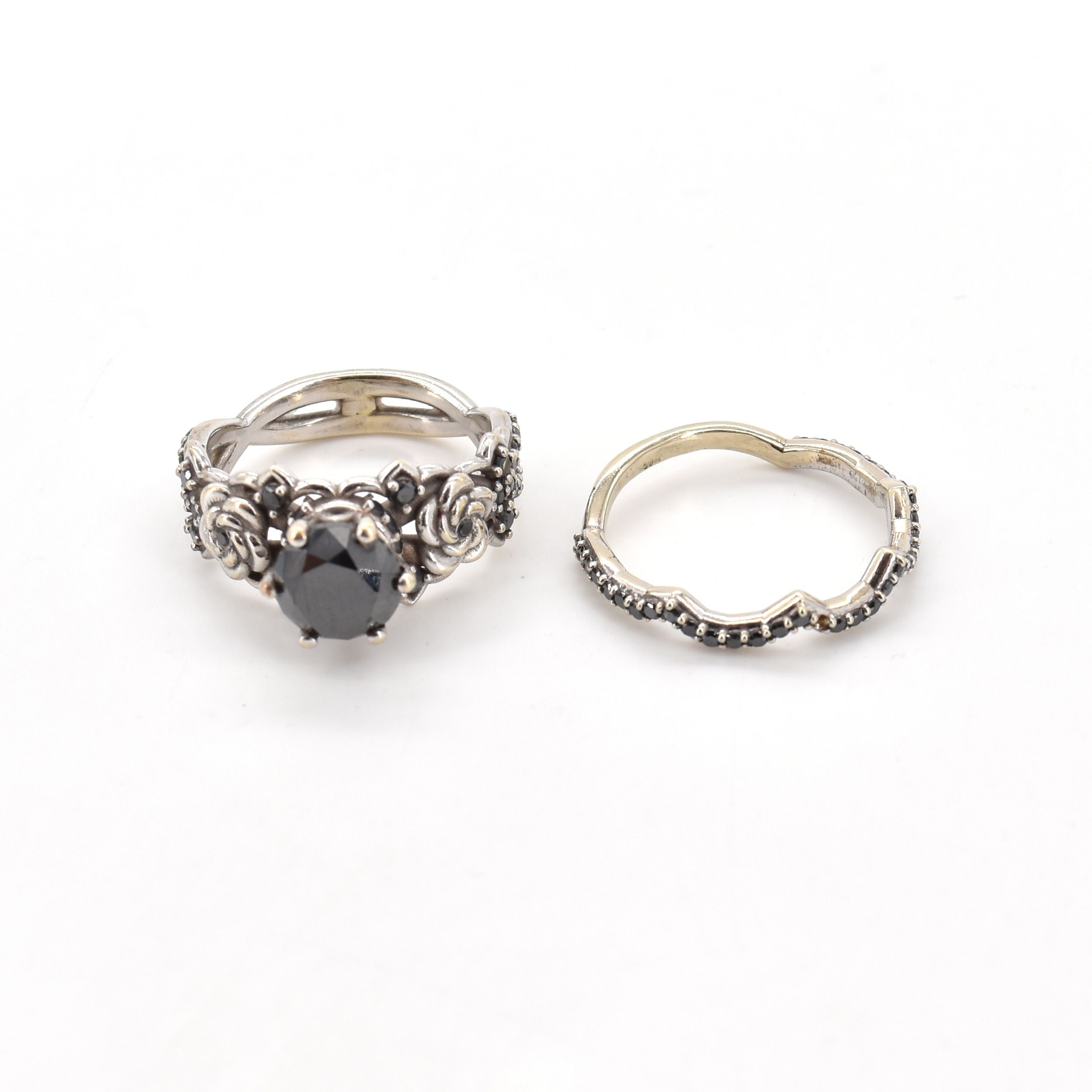 2 ringen in 14 kt witgoud bezet met zwarte briljanten - 6.8 g(Maten: 50.5 & 51)