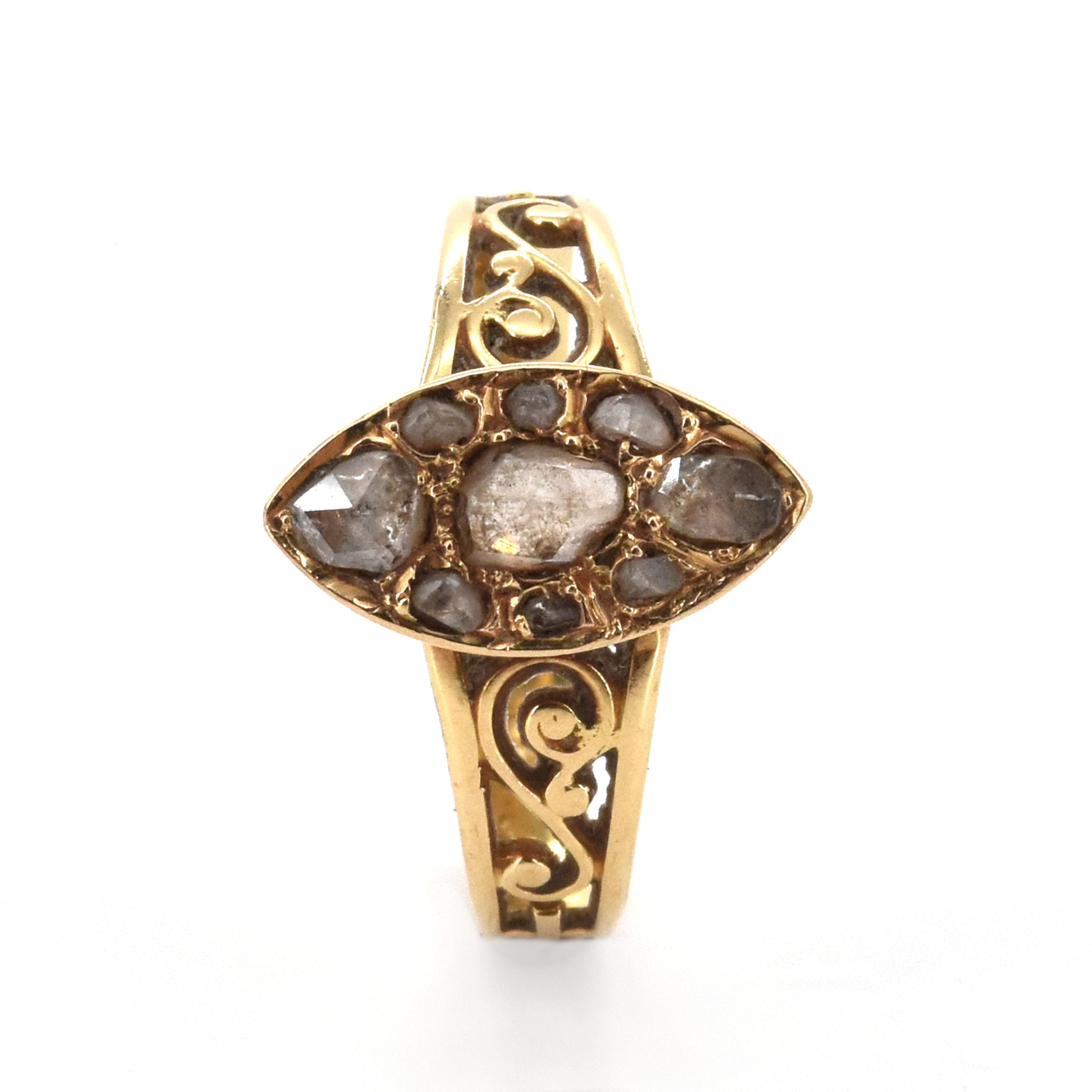 Ring in 18 kt geelgoud bezet met diamantroosjes - 2.9 g (Maat: 59)