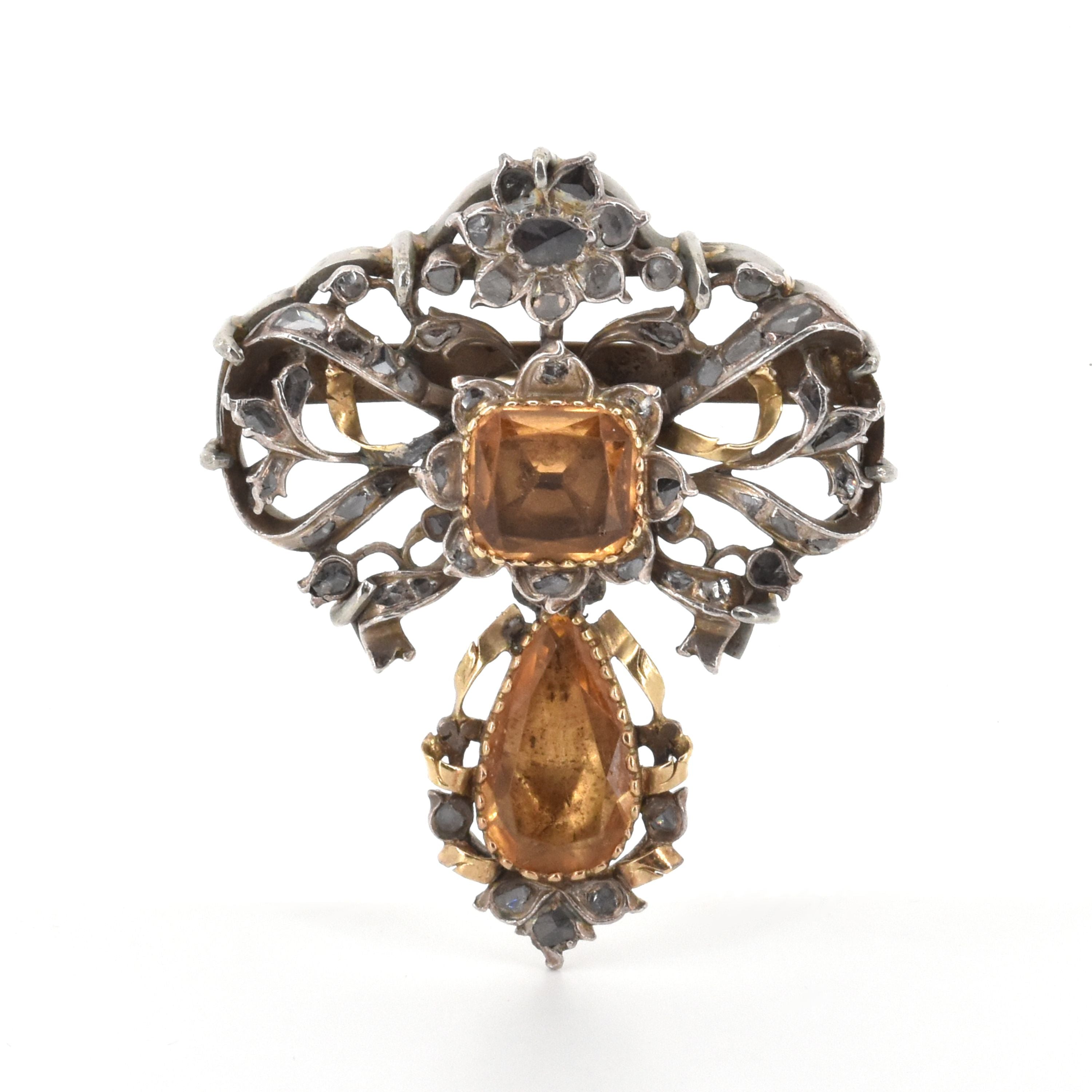Borstspeld in zilver met gedeelten in 18 kt geelgoud bezet met diamantroosjes (kleurstenen, beschadigd, tin) - 18.2 g bruto