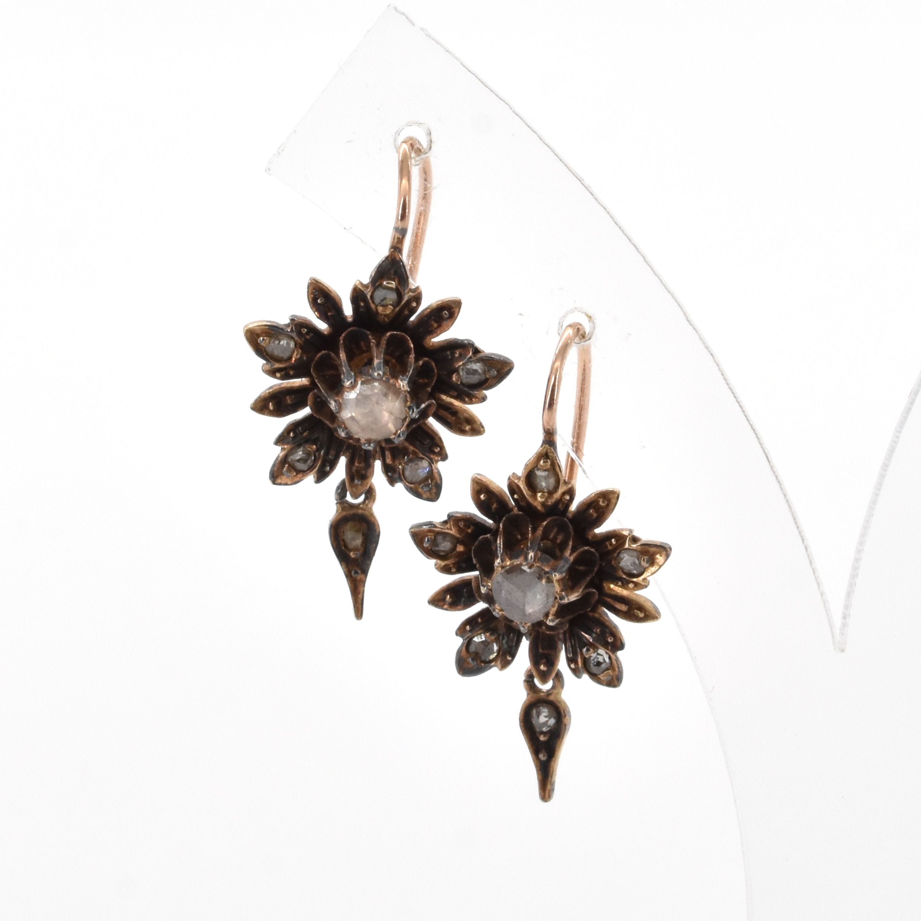 2 oorringen in 18 kt geelgoud met gedeelten in 14 kt geelgoud bezet met diamantroosjes - 3.6 g bruto