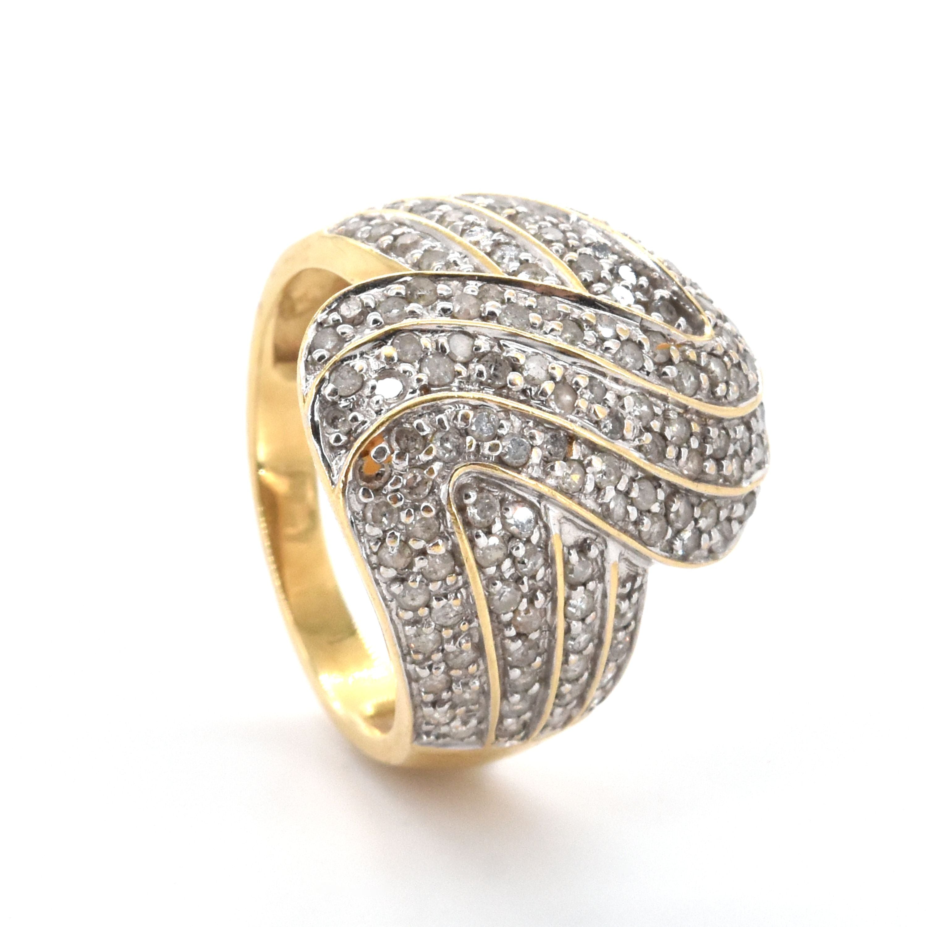 Ring in 14 kt geelgoud bezet met 118 diamanten 8/8 slijpsel +/- 1.18 kt (stenen ontbreken, stenen beschadigd) - 4.7 g (Maat: 55)