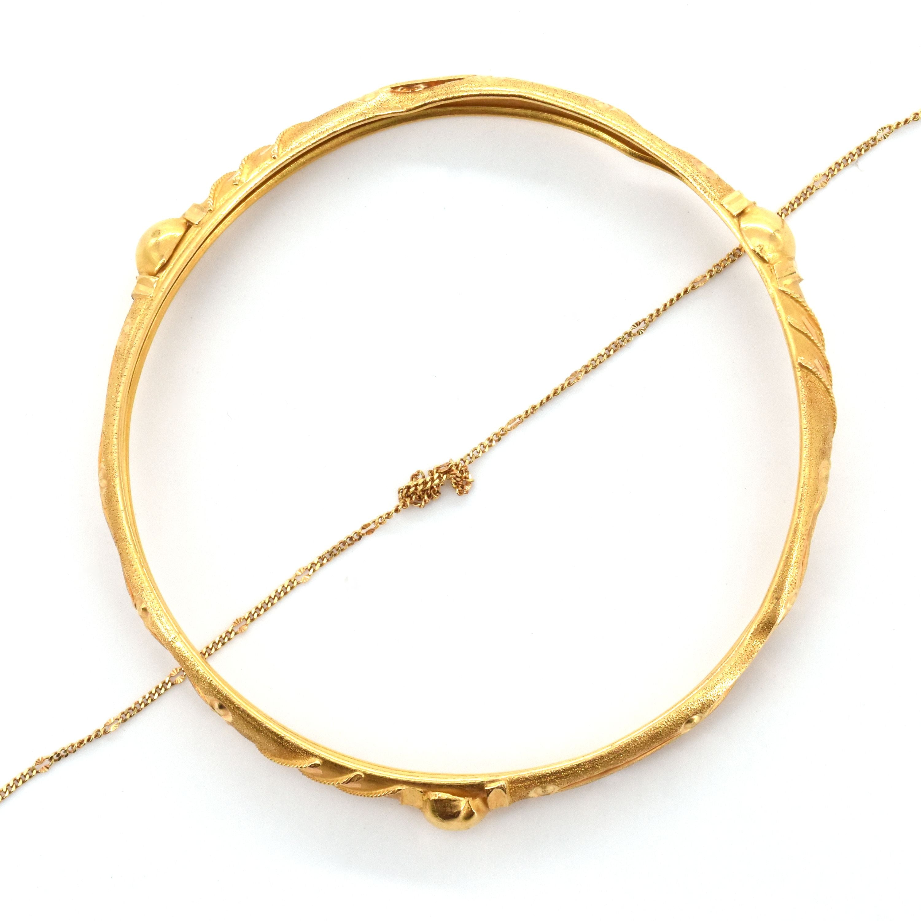 Halsketting en onbuigzame armband in 18 kt geelgoud (gebroken, gedeukt) - 14.6 g (20 cm)
