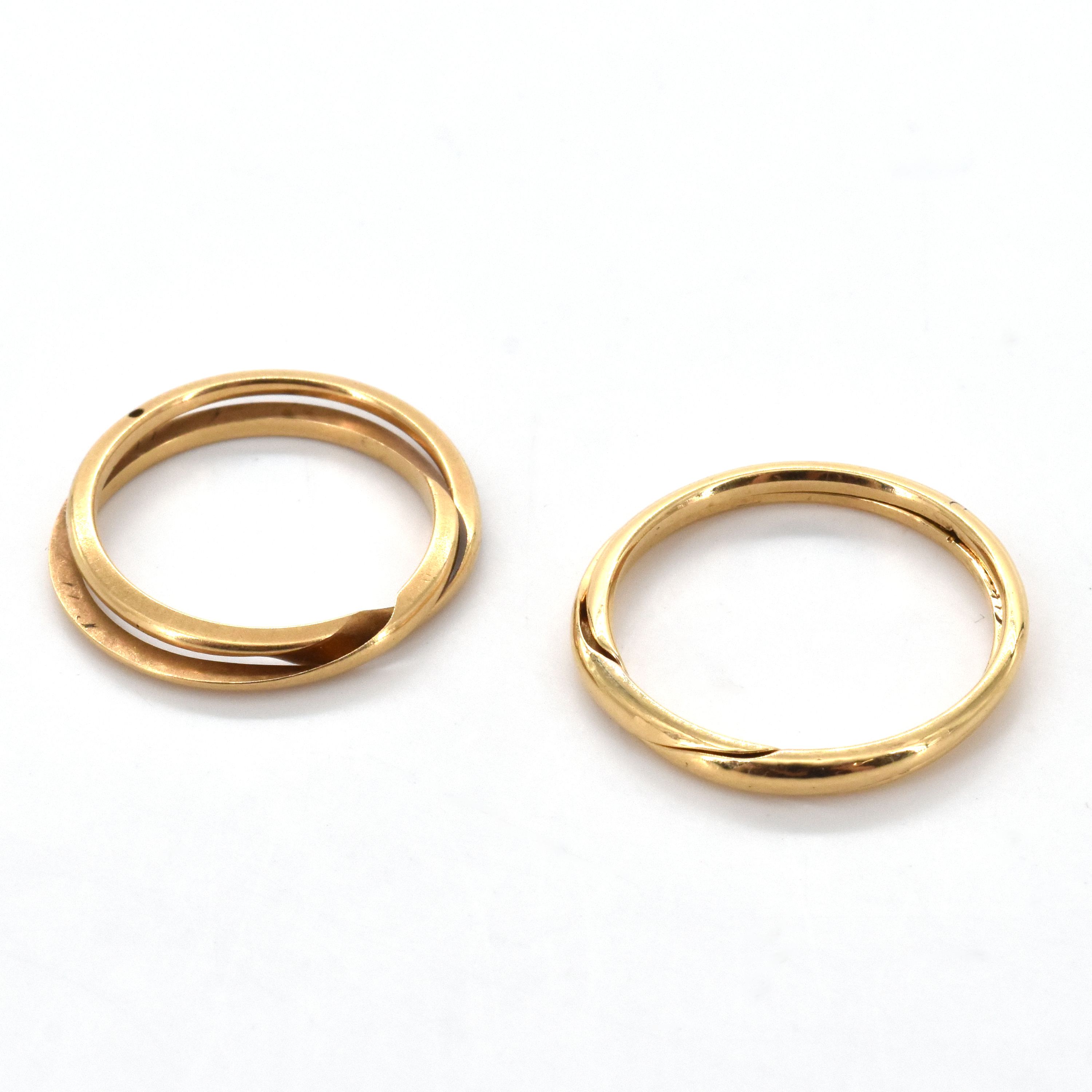 2 trouwringen met geheime boodschap in 18 kt geelgoud (gegraveerd) - 5.2 g (Maten: 53.5 & 57.5)