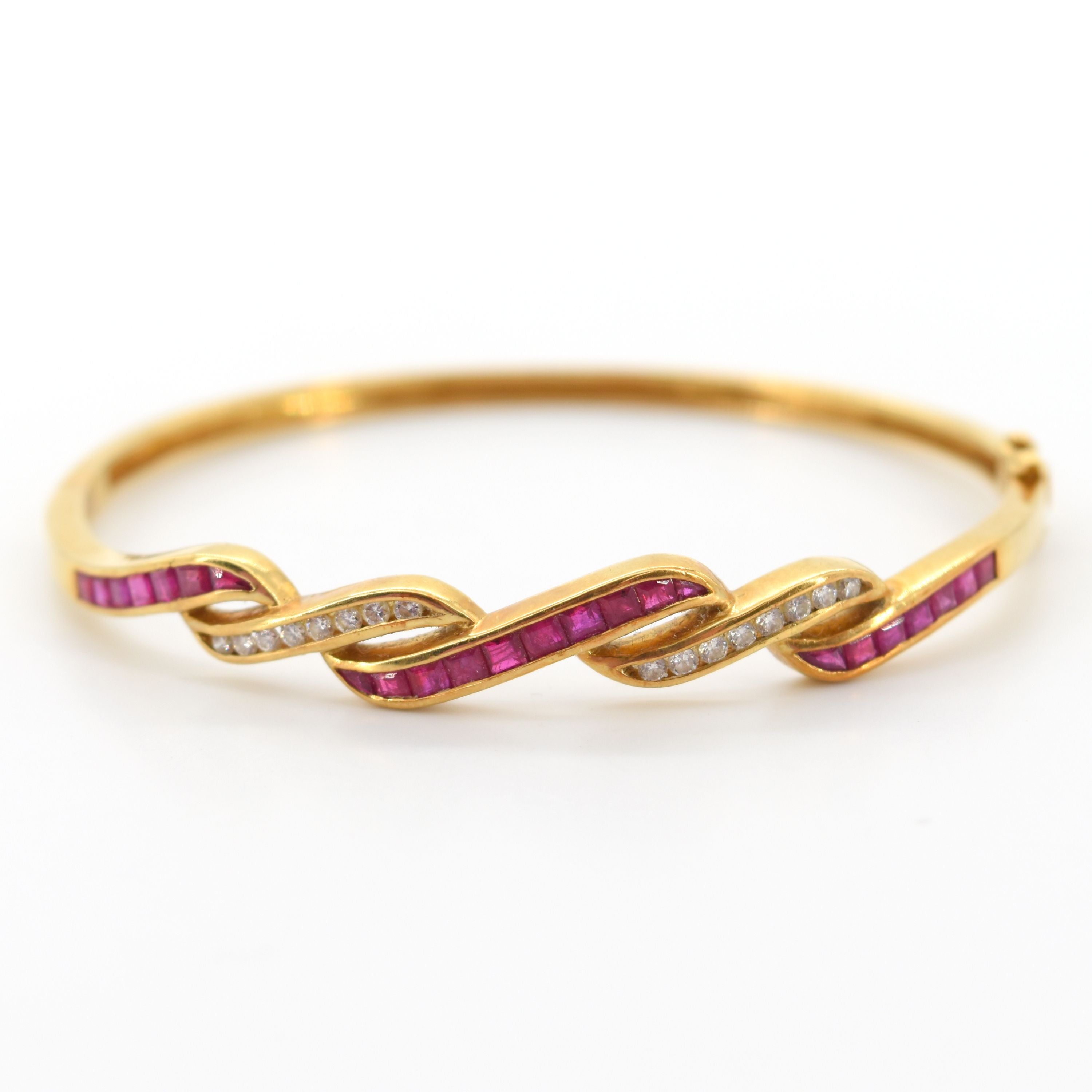 Onbuigzame armband in 18 kt geelgoud bezet met 16 briljanten +/- 0.32 kt (kleurstenen) - 14.4 g bruto (17 cm)