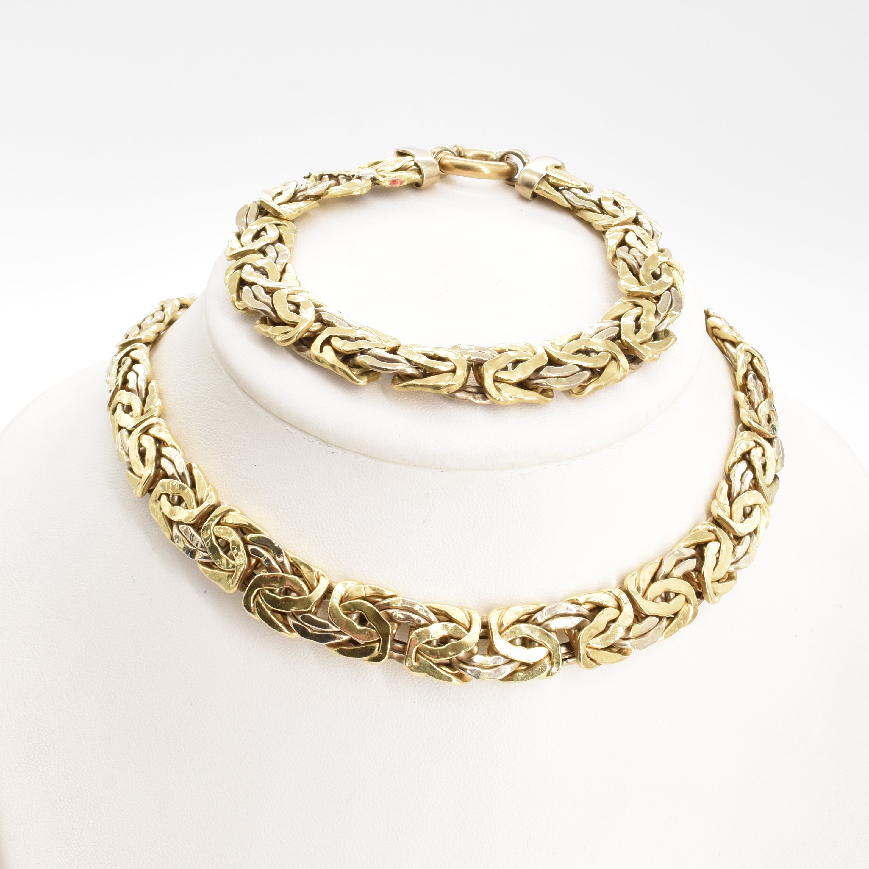 Halsketting en armband in 18 kt geel- en witgoud (beschadigd, gedeukt, gebroken, stukje ontbreekt) - 60.9 g (48 & 21.5 cm)