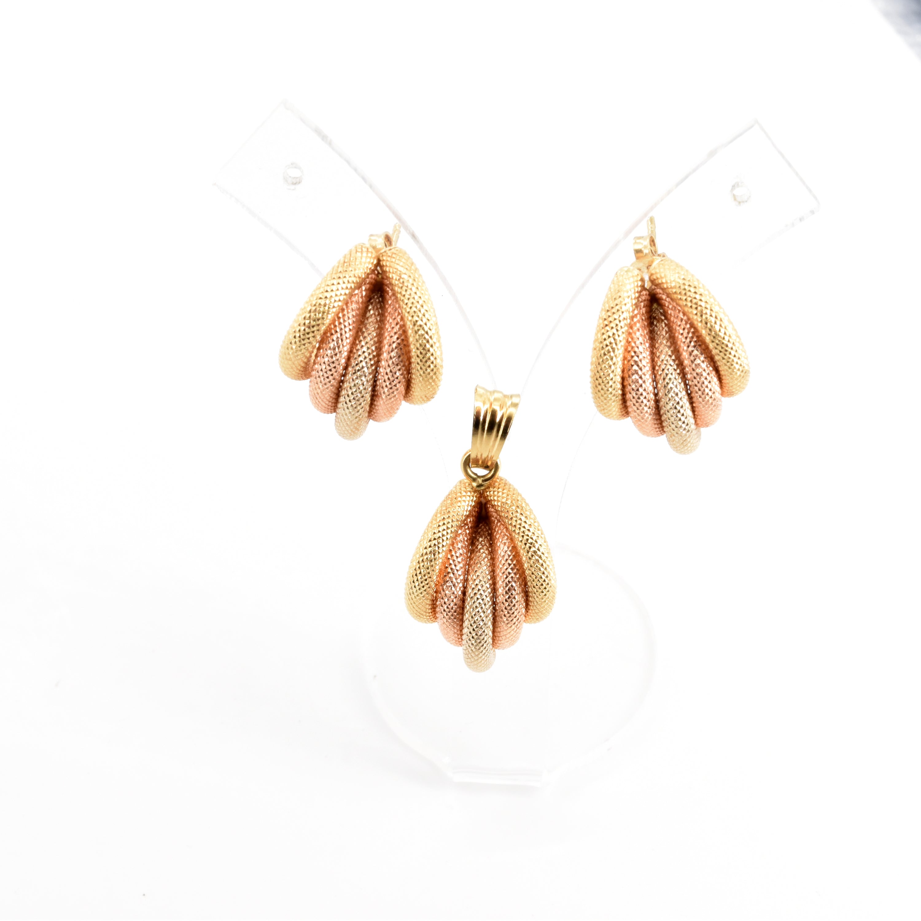 Hanger en 2 oorringen in 18 kt 3-kleurengoud - 7.5 g