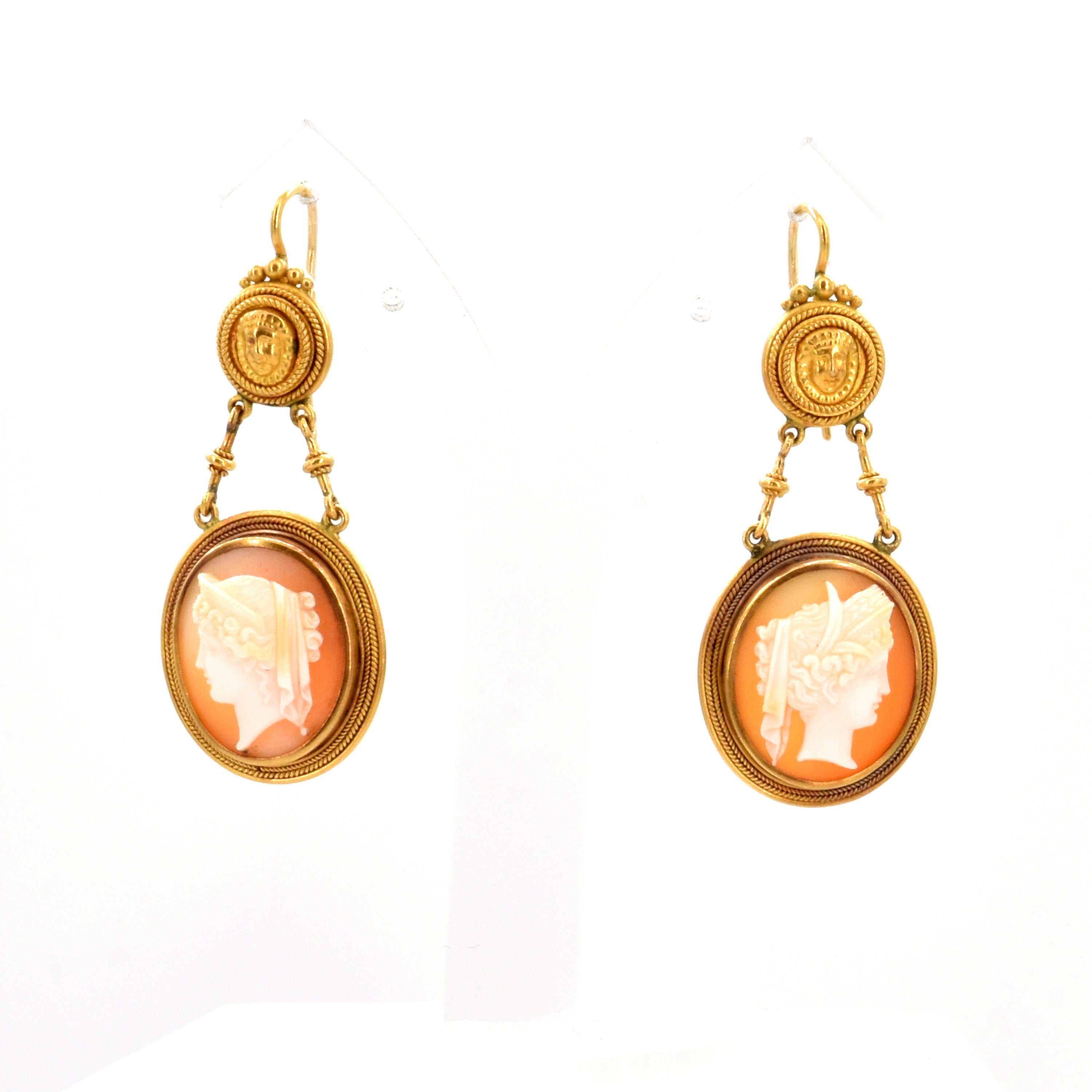 2 oorringen in 18 kt geelgoud bezet met 2 camëen - 11.5 g bruto + originele doos