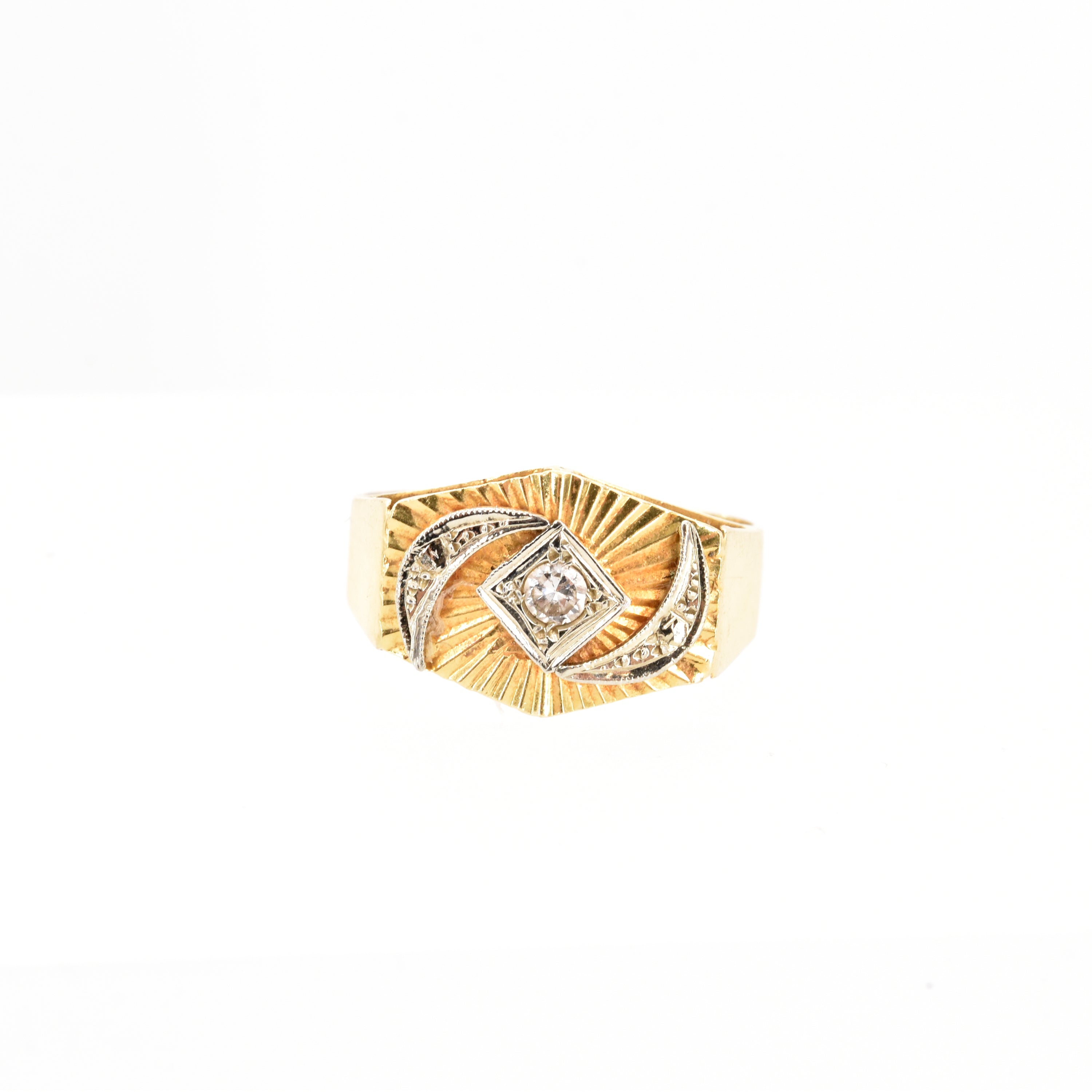 Ring in 18 kt geel- en witgoud bezet met 1 briljant +/- 0.08 kt - 4.4 g (Maat: 52)