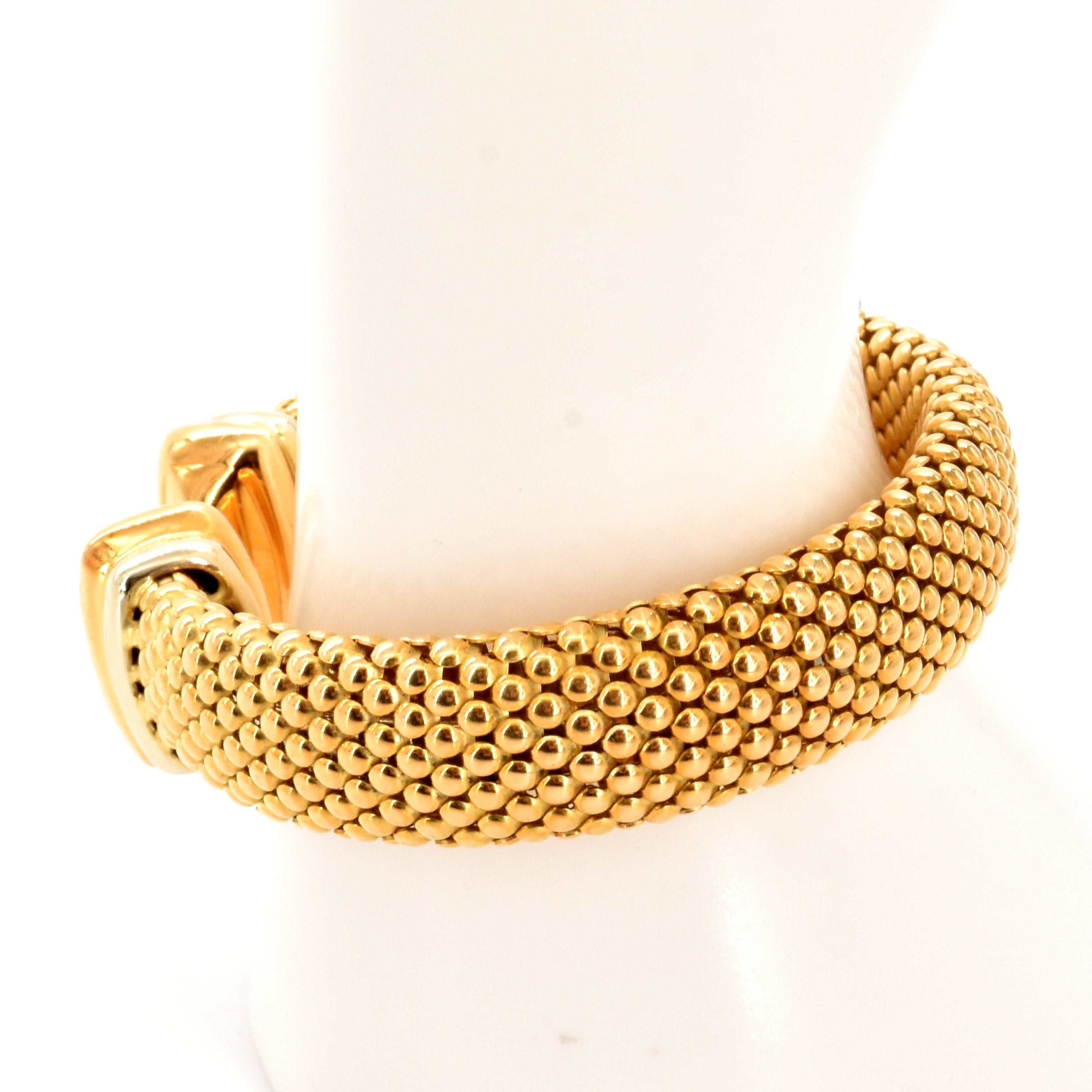Onbuigzame armband in 18 kt geel- en witgoud (gedeelte in metaal) - 52.4 g brut (16.5 cm)