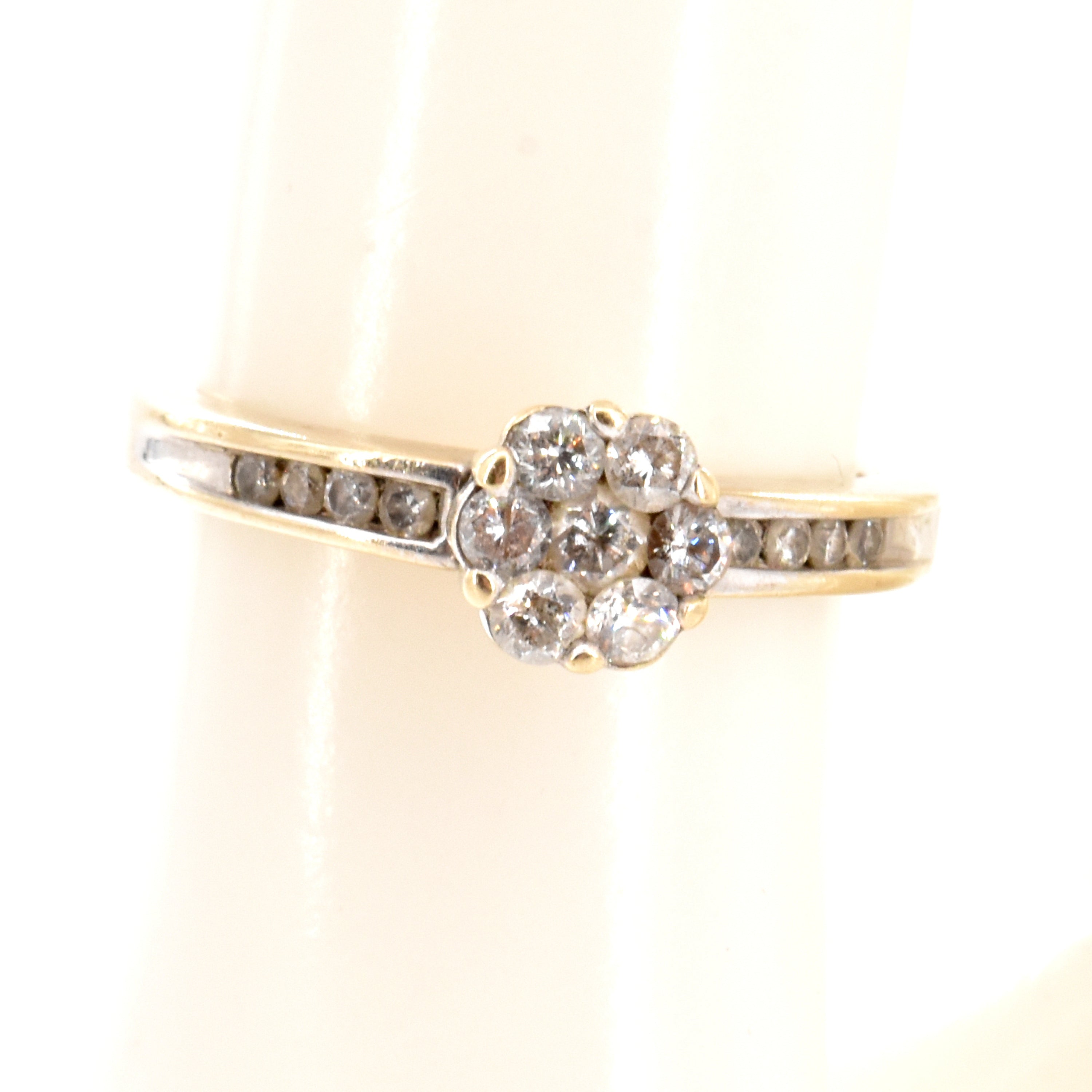 Ring in 18 kt witgoud bezet met 15 briljanten +/- 0.30 kt (beschadigd) - 3.9 g (Maat: 53)