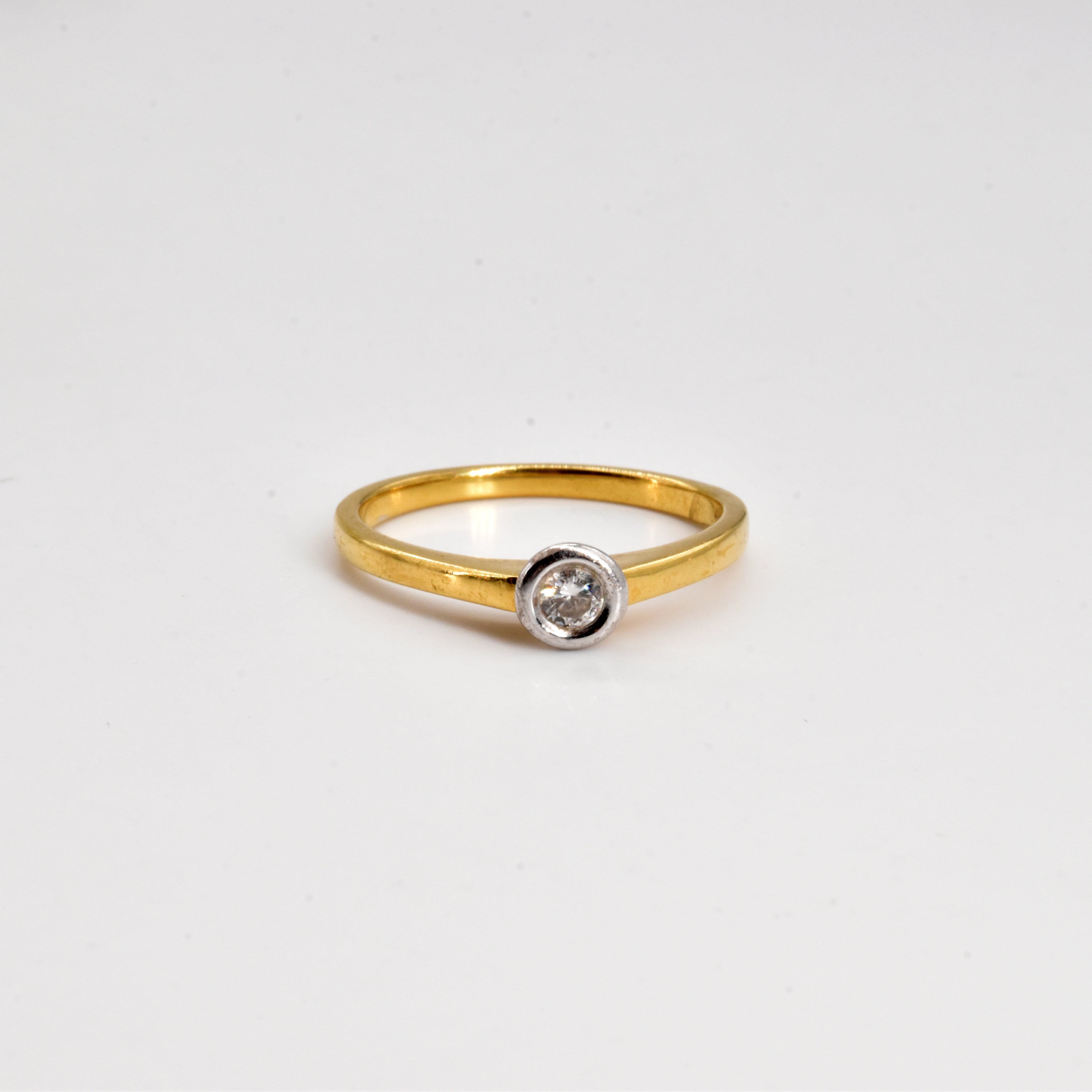 Ring in 18 kt geel- en witgoud bezet met 1 briljant +/- 0.10 kt - 2.9 g (Maat: 54)