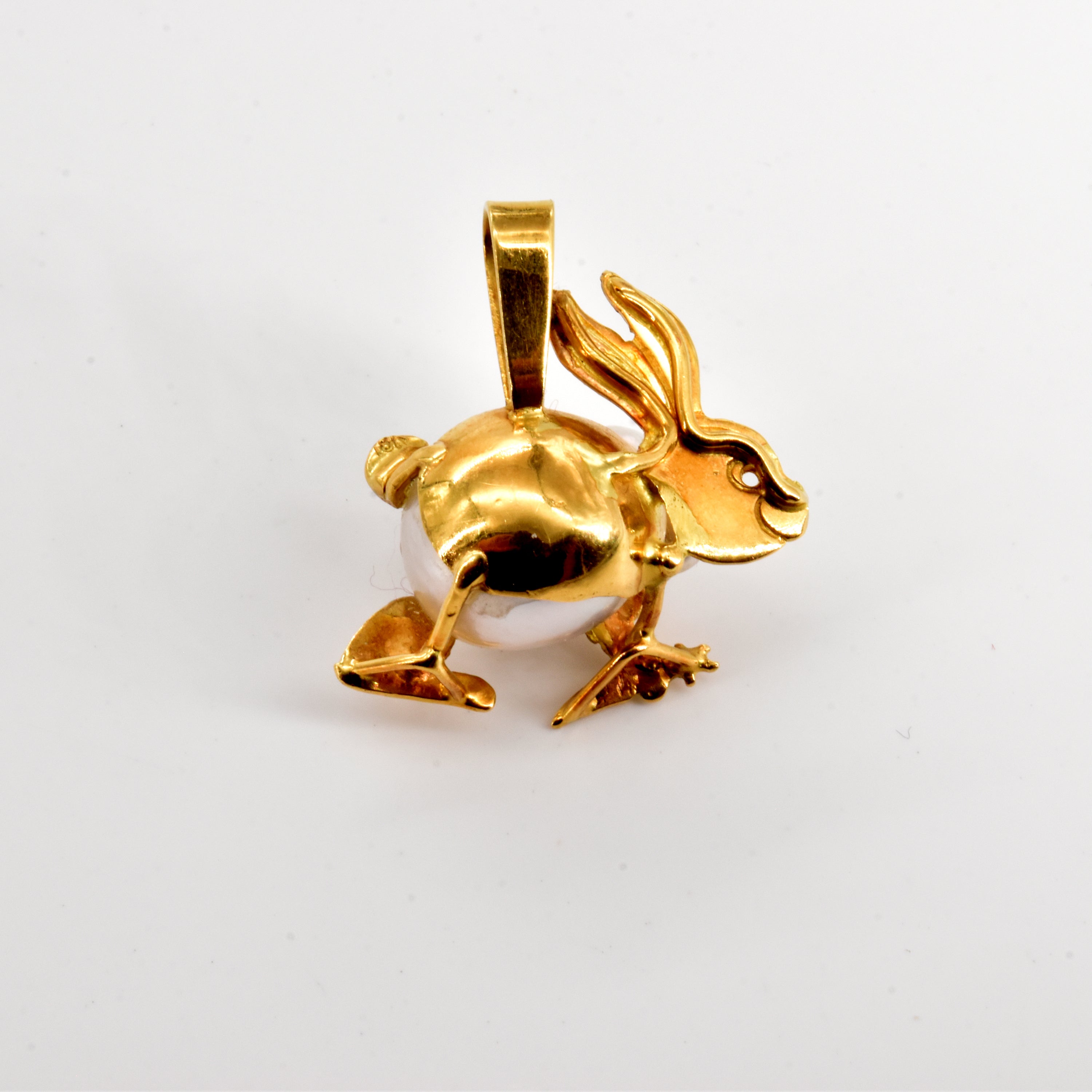 Hanger in 18 kt geelgoud bezet met 1 barok parel - 7.5 g bruto