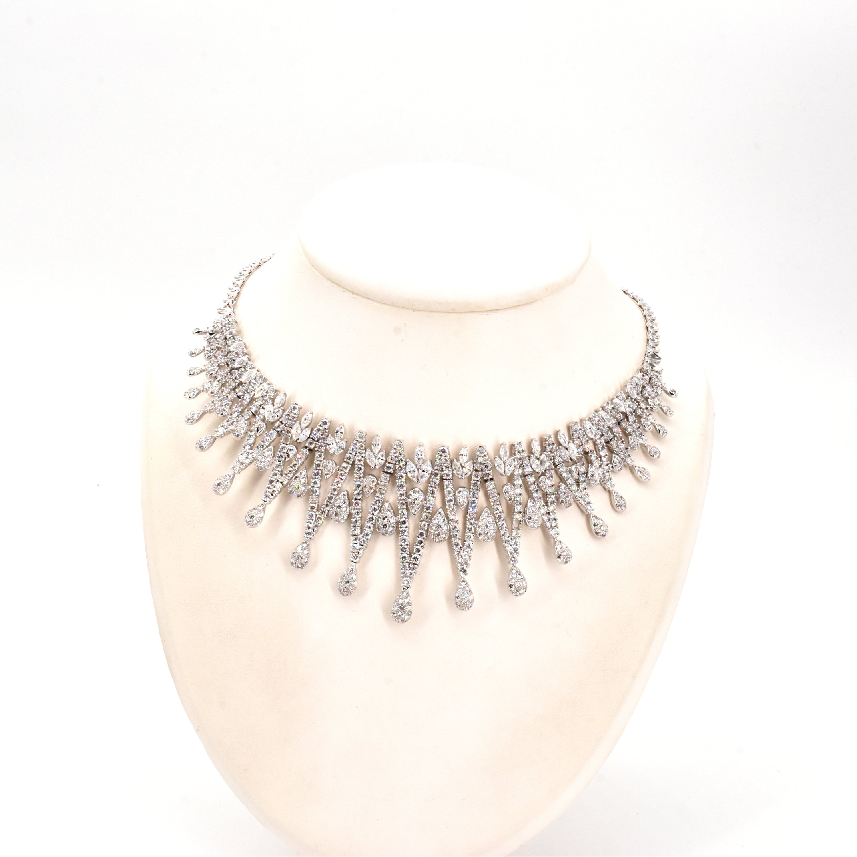 Halsketting in 18 kt witgoud (valse stenen, stenen ontbreken) - 70.9 g bruto (47 cm)