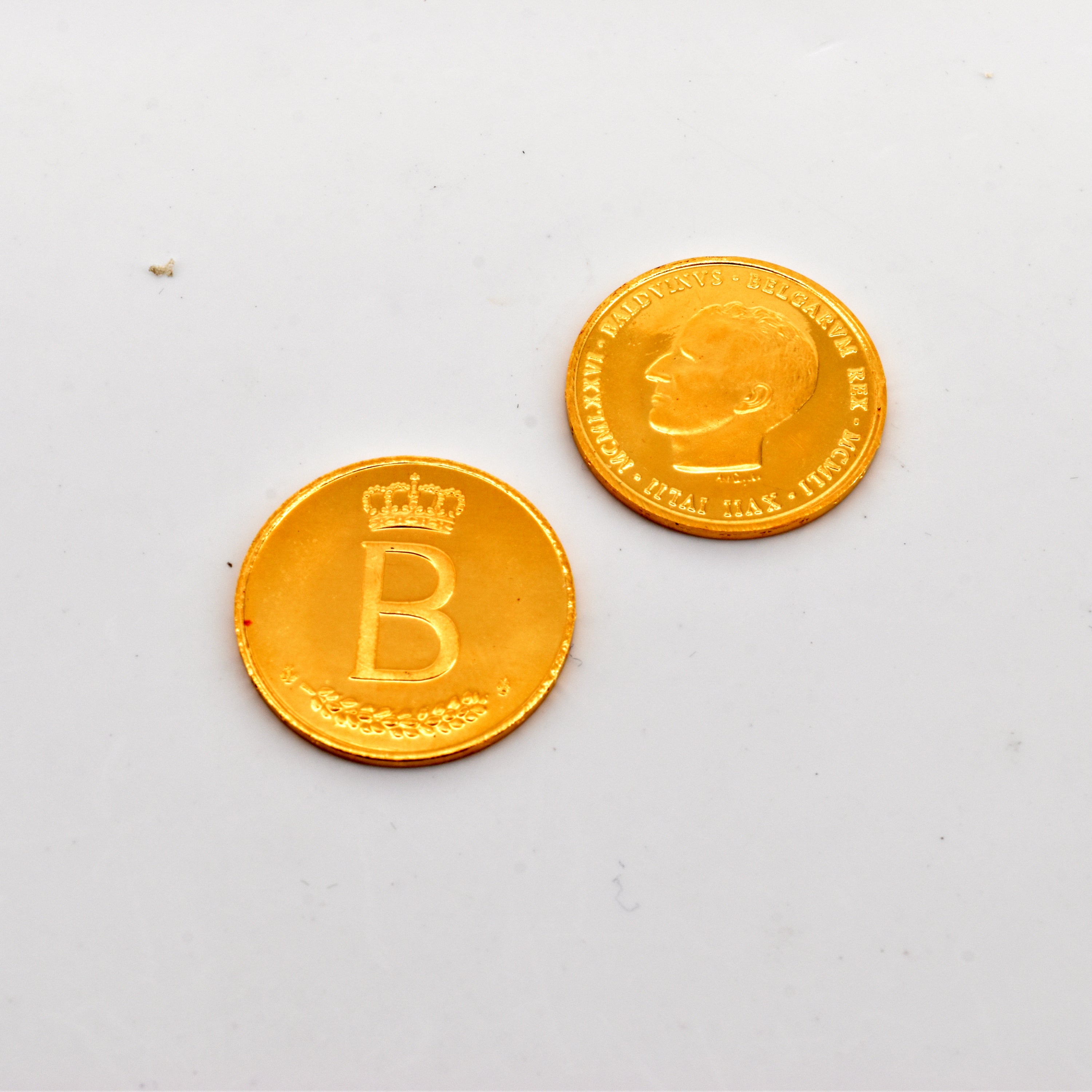 2 herdenkingsmunten in geelgoud 900/1000 (belgische-25 jaar regering van koning Boudewijn I-1976) - 12.8 g