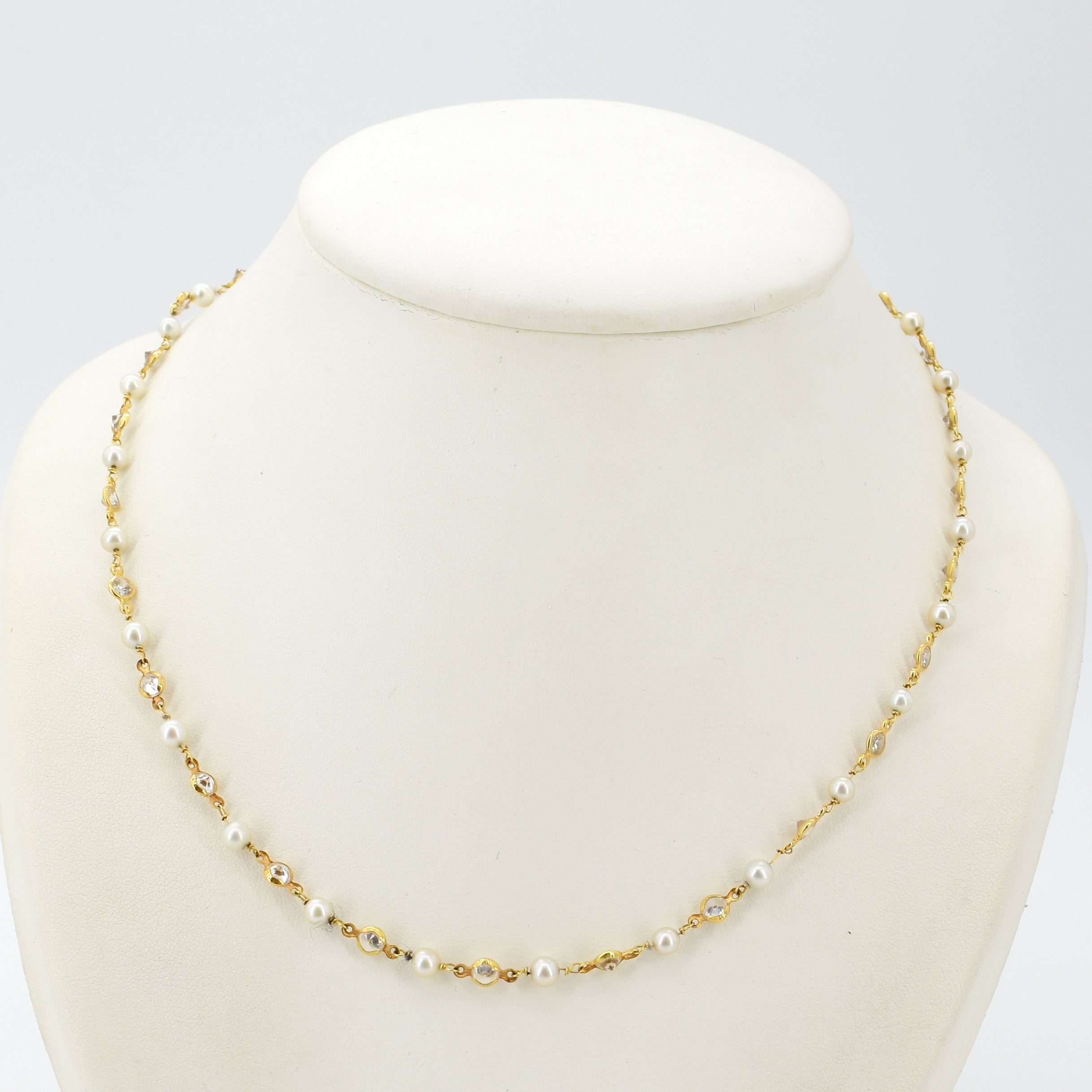 Halsketting in 18 kt geelgoud (parels, valse stenen, gedeukt) - 7.2 g bruto (48 cm)