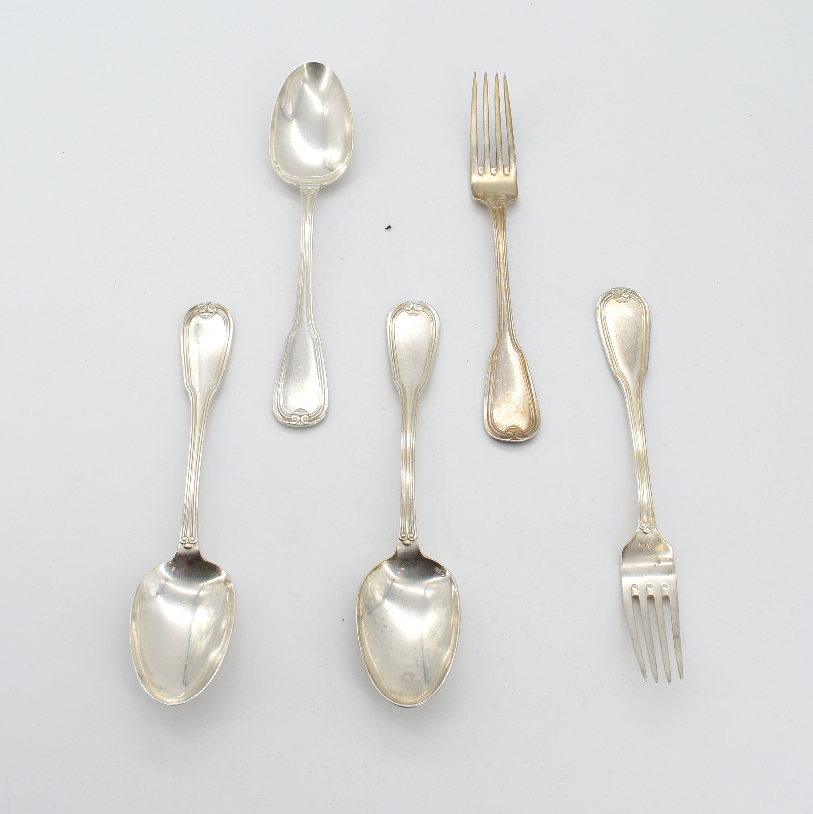 3 lepels en 2 dessertvorken in zilver 800/1000 (gegraveerd, gedeukt) - 262.5 g