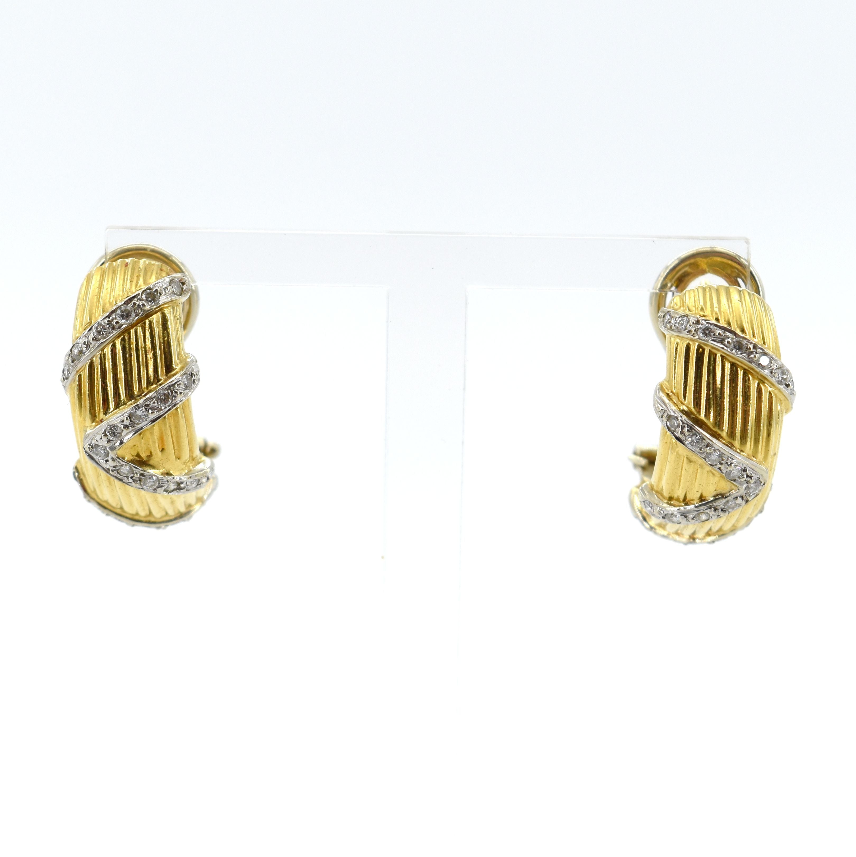 2 oorringen in 18 kt geel- en witgoud bezet met 44 briljanten +/- 0.44 kt - 15 g