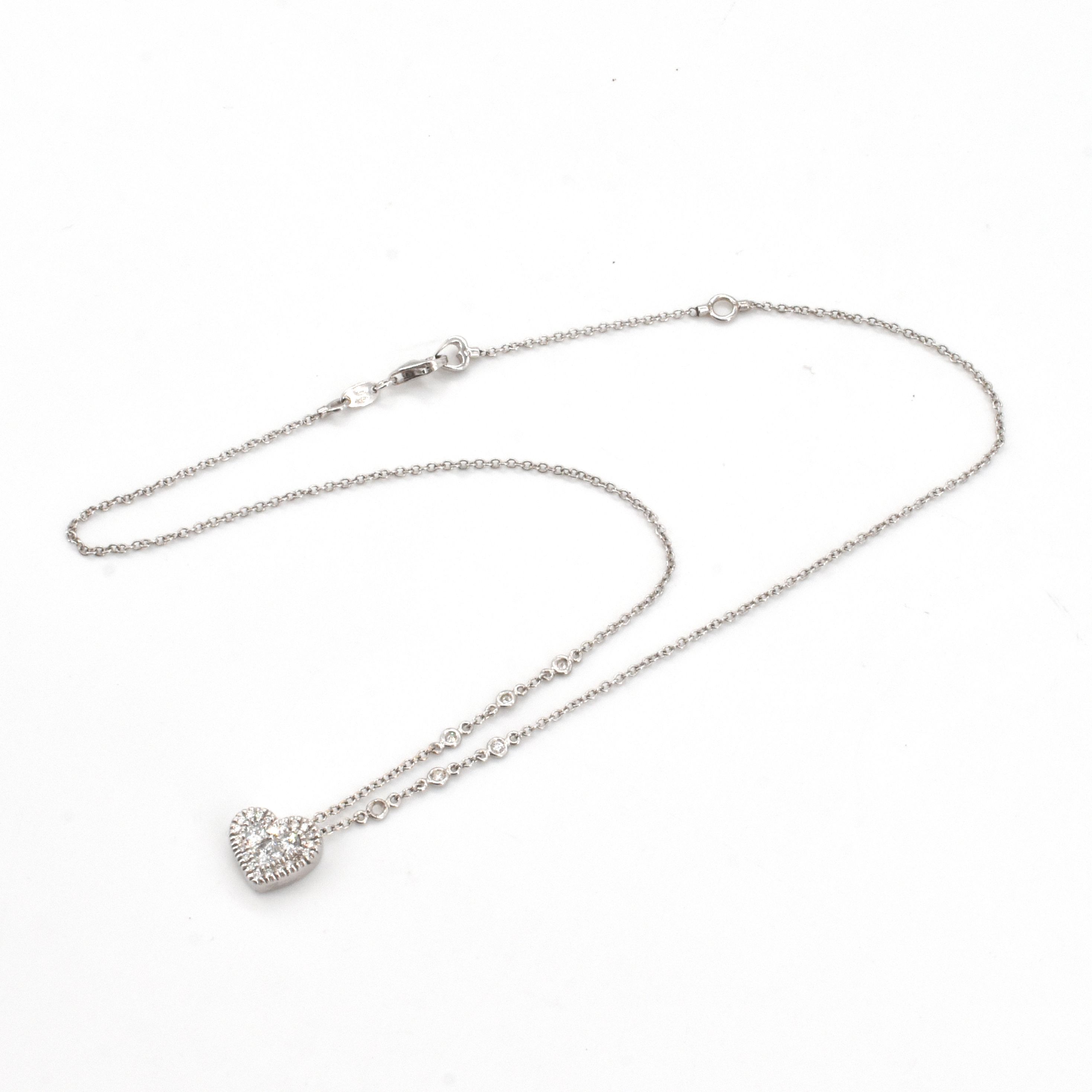 Halsketting met hanger in 18 kt witgoud bezet met 3 diamanten fantasieslijpsel +/- 0.30 kt en 25 briljanten +/- 0.30 kt (stenen ontbreken) - 6.3 g (45 cm)