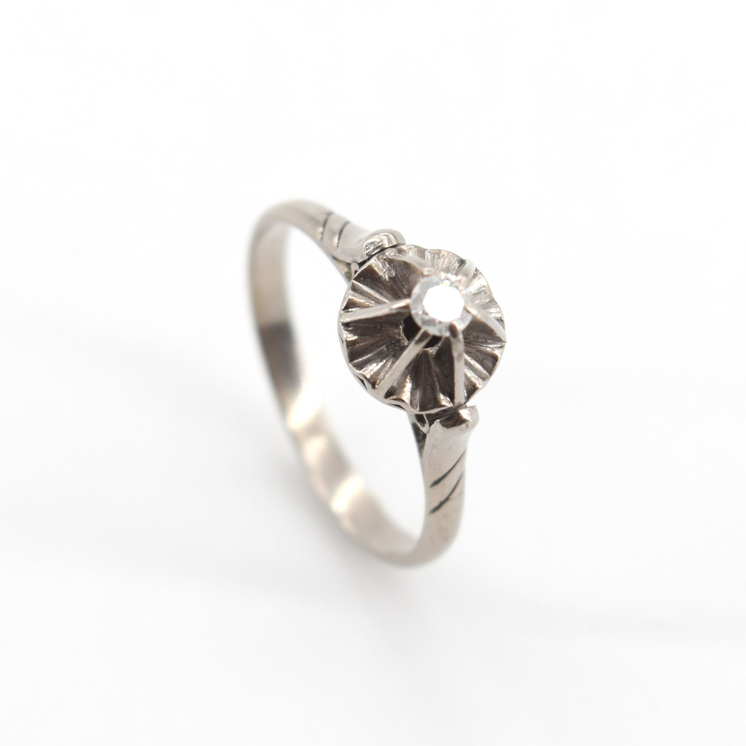 Ring in zilver bezet met 1 briljant +/- 0.10 kt - 2 g (Maat: 52)