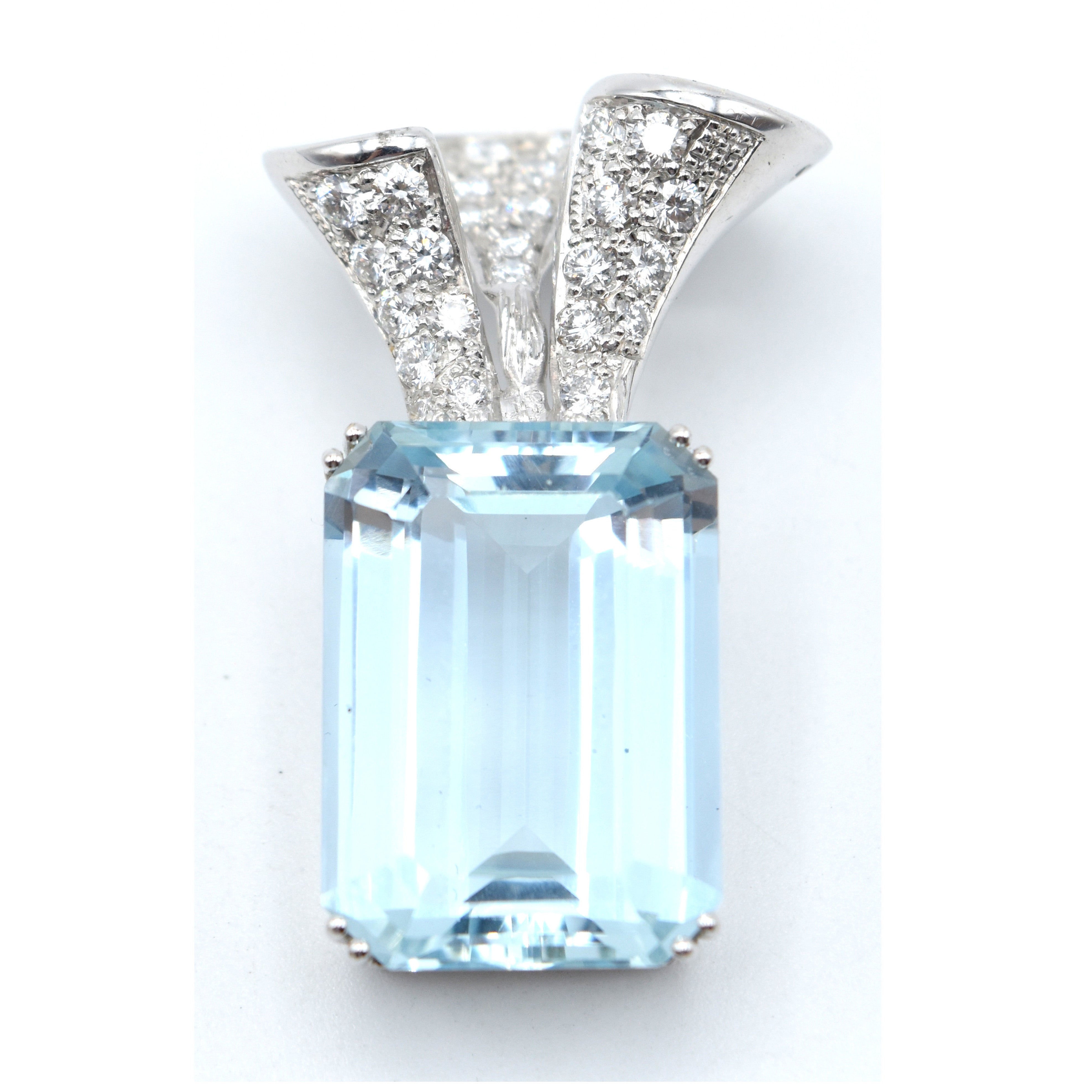 Hanger in 18 kt witgoud bezet met 37 briljanten +/- 1 kt en 1 aquamarijn - 14 g bruto