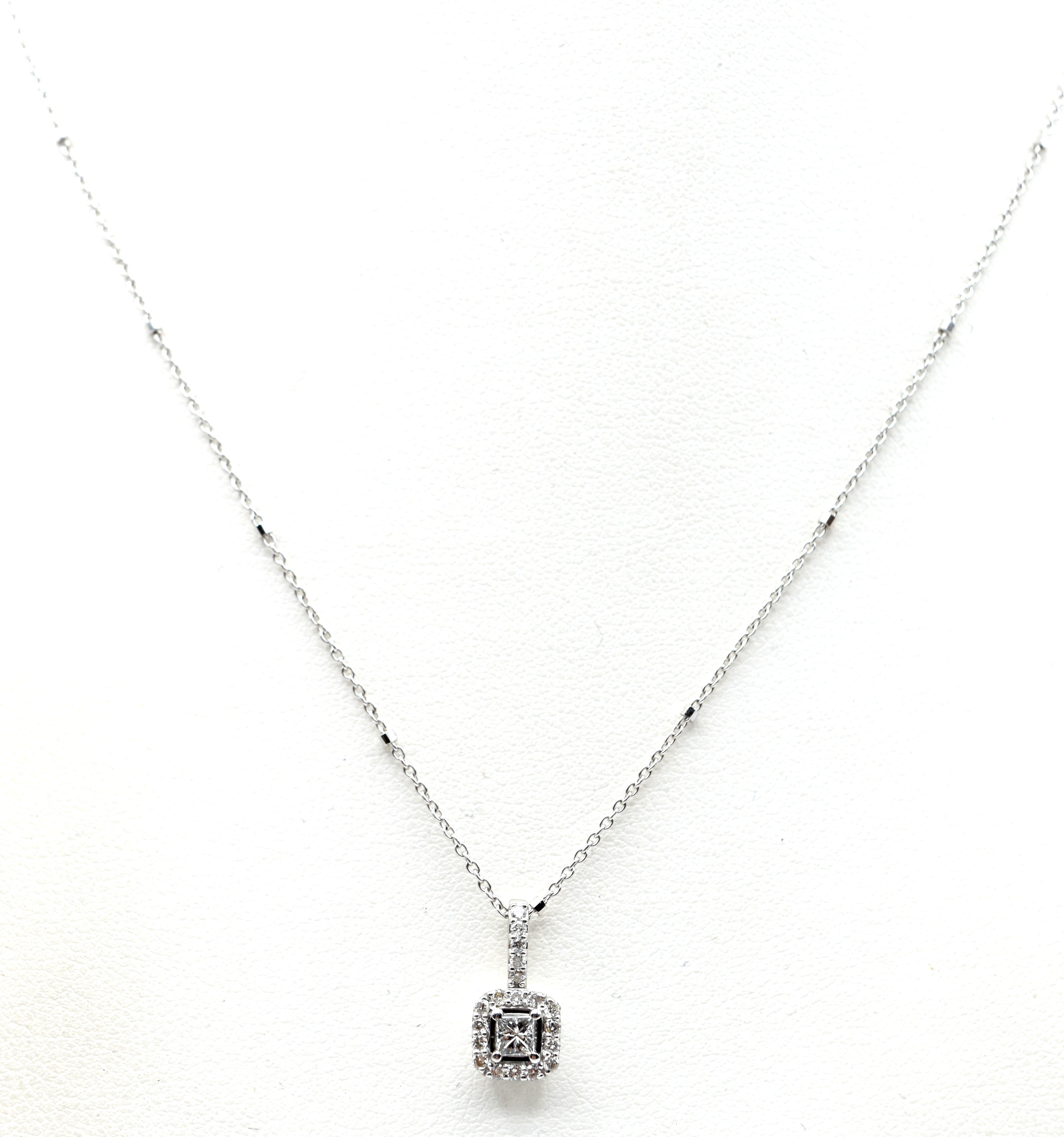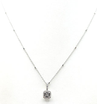 Halsketting en hanger in 18 kt witgoud bezet met 19 briljanten +/- 0.20 kt en 1 diamant princesseslijpsel +/- 0.15 kt - 2.9 g (42 cm)