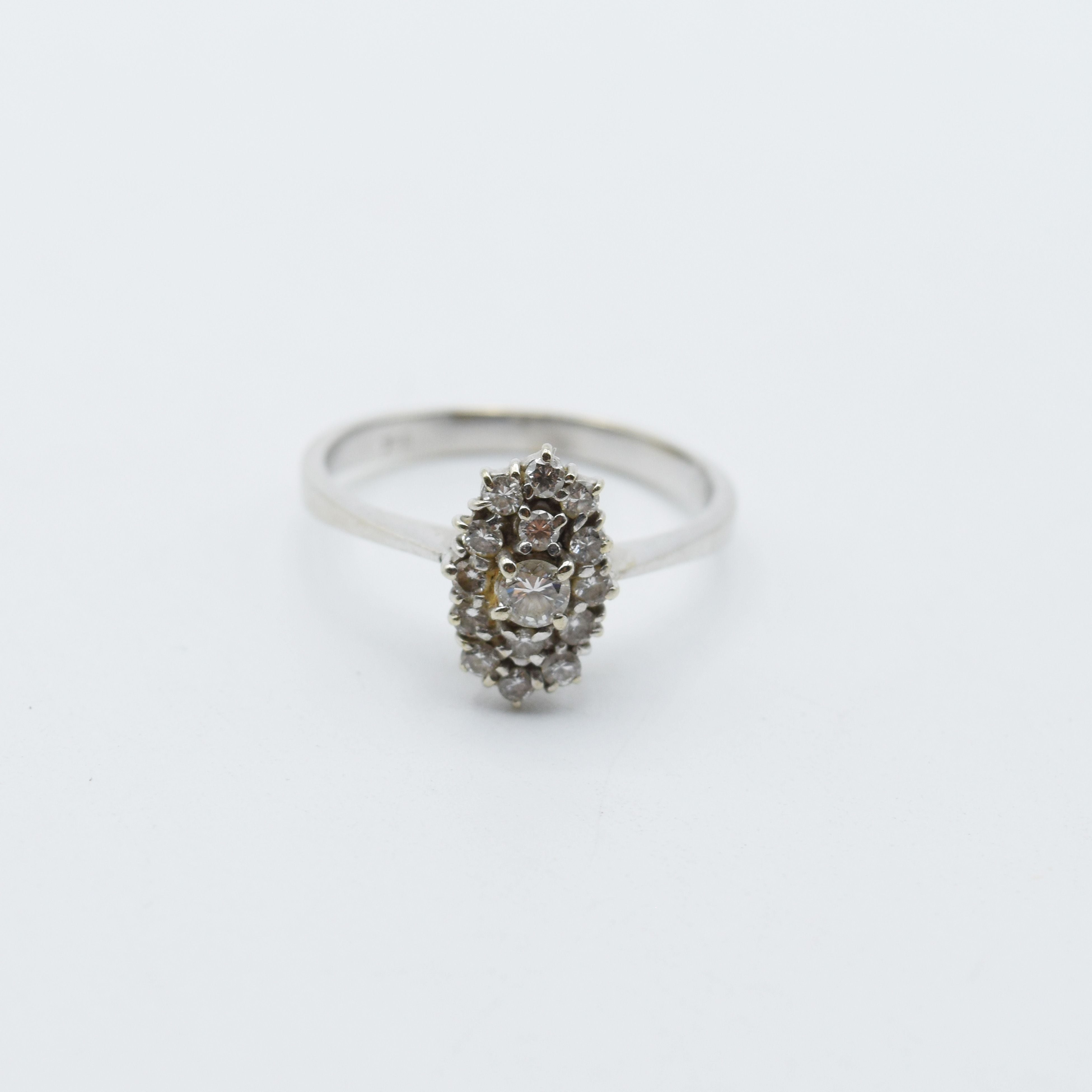 Ring in 18 kt witgoud bezet met 15 briljanten +/- 0.30 kt - 3.2 g (Maat: 58.5)