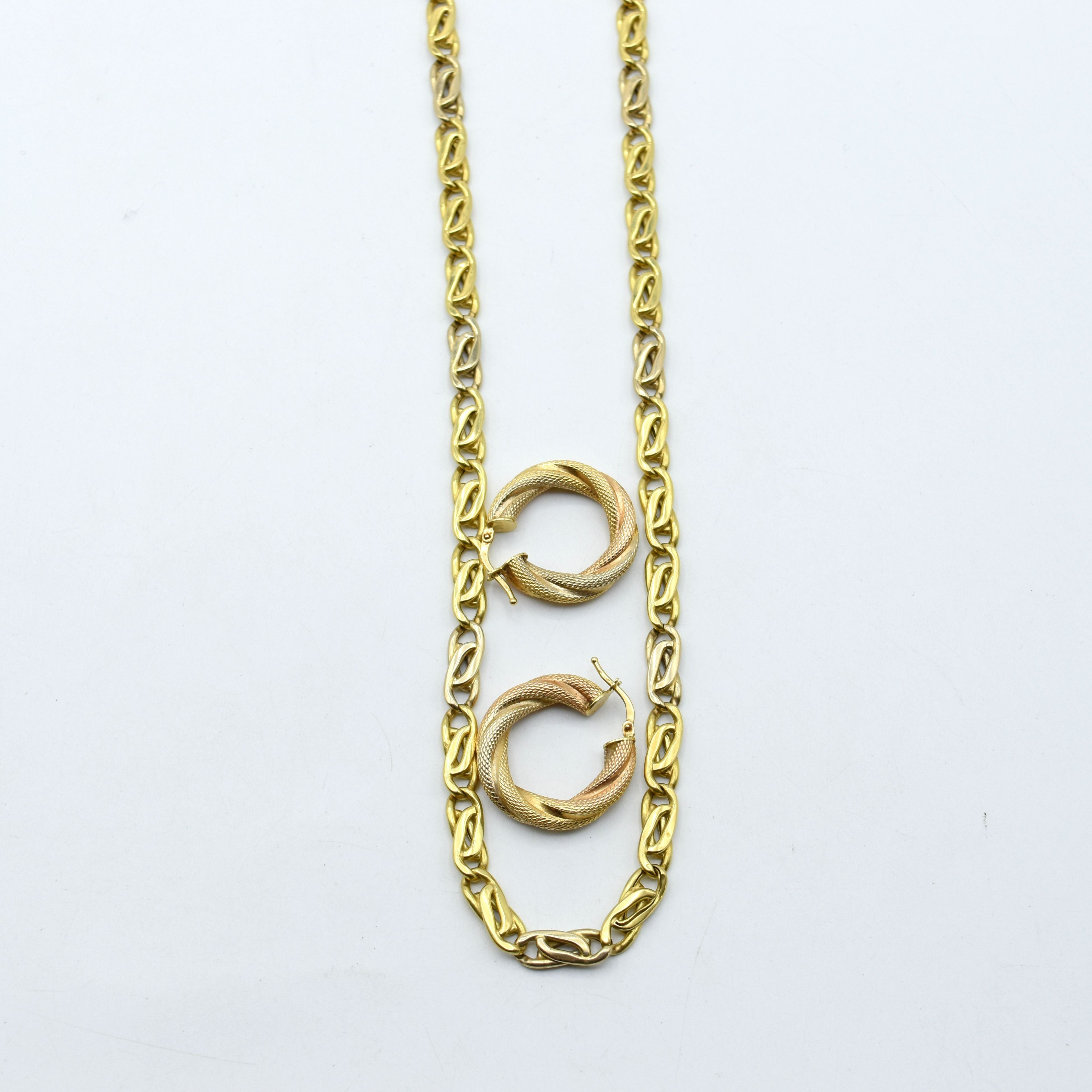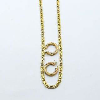 Halsketting en 2 oorringen in 18 kt 3-kleurengoud - 22.6 g (48 cm)