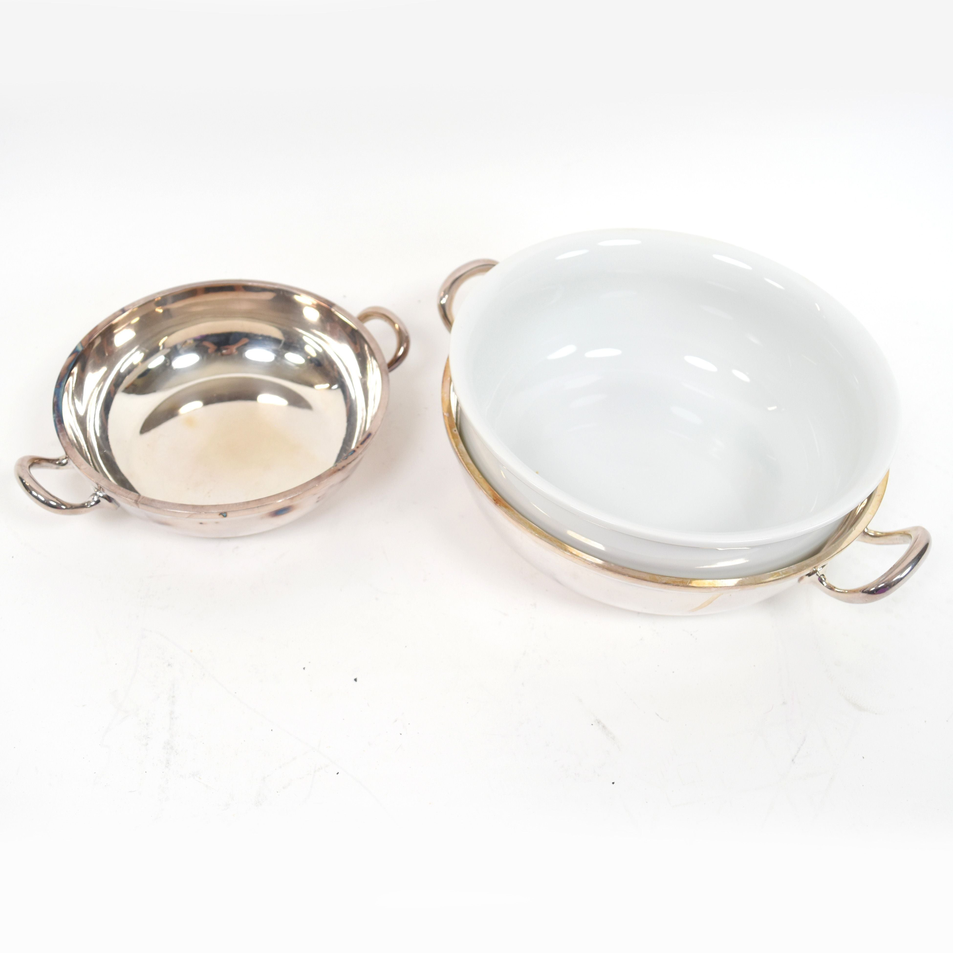 2 schaaltjes in verzilverd metaal getekend WISKEMANN 1 bord en 1 slakom in porselein