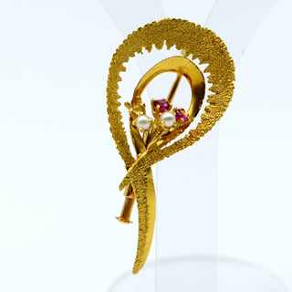 Borstspeld in 18 kt geelgoud (parels, kleurstenen, steen ontbreekt) - 4.9 gr bruto