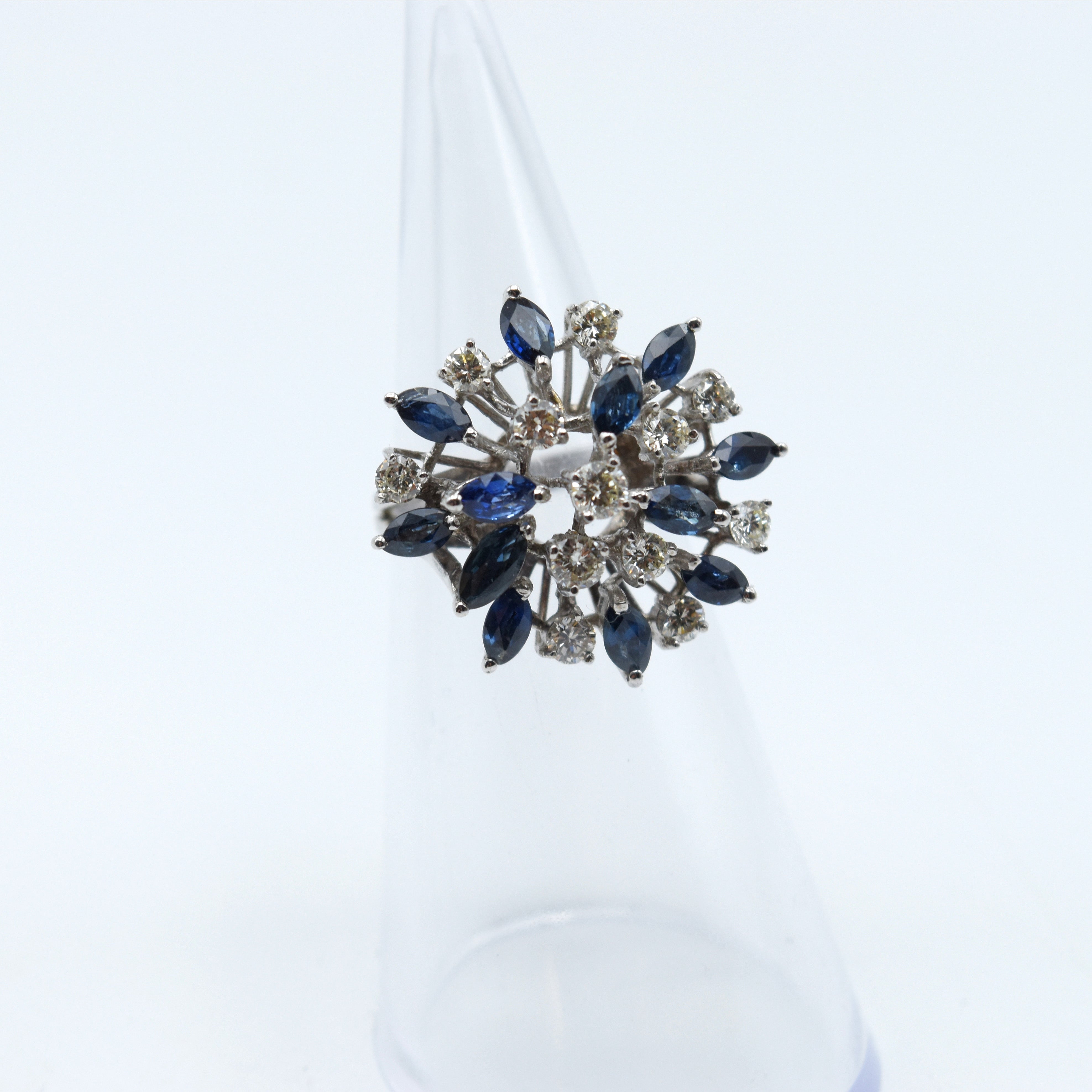 Ring in 18 kt witgoud bezet met 12 briljanten +/- 1.20 kt en saffieren - 10 gr (Maat: 57)